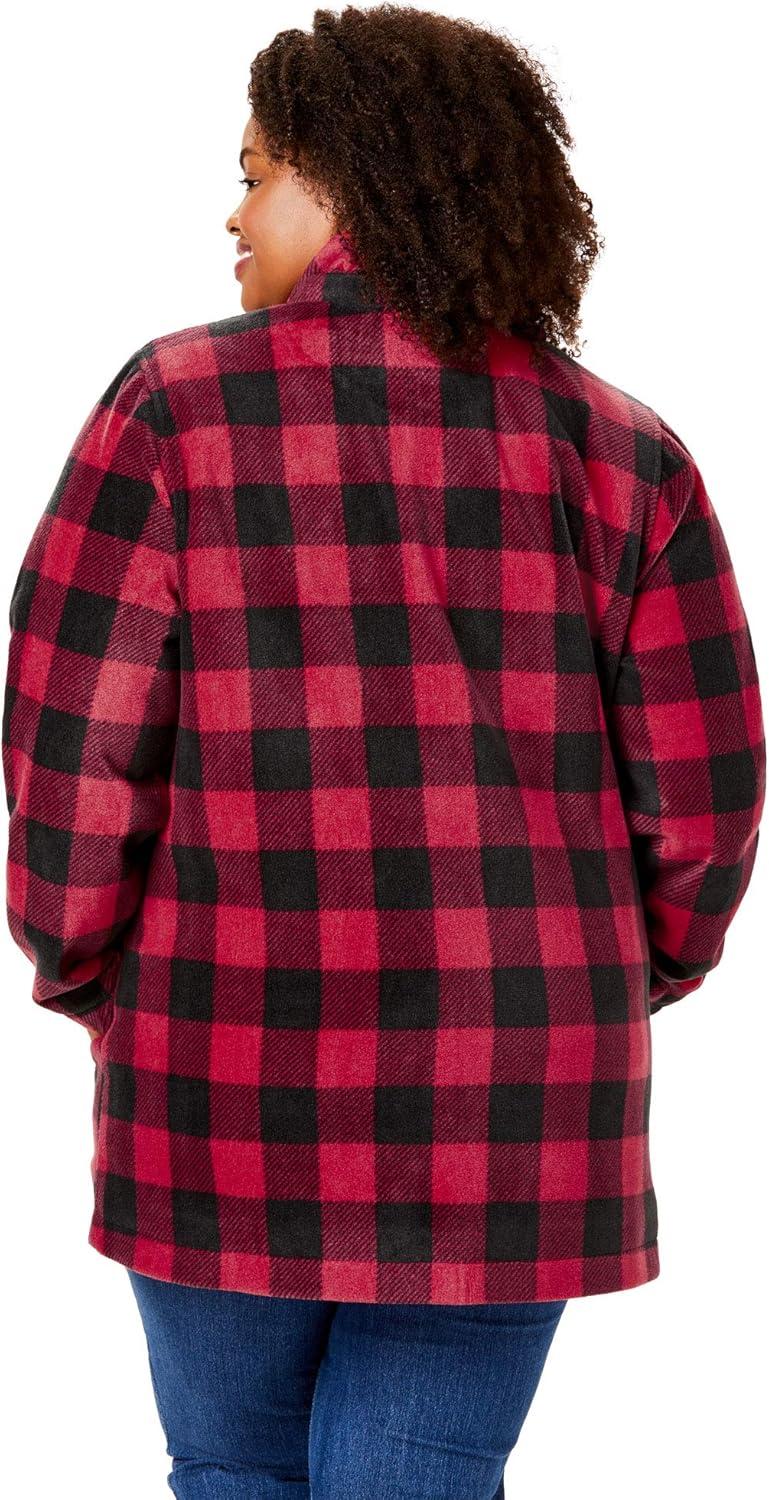 Woman Within Plus Size Hooded Fleece Coat(Classic Red Buffalo Plaid)