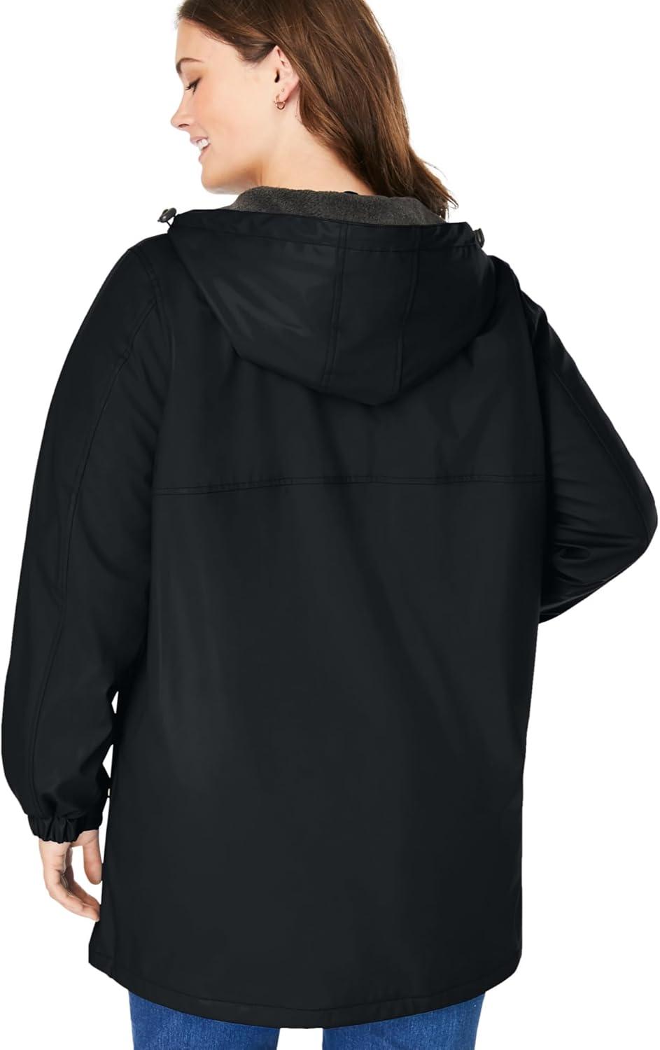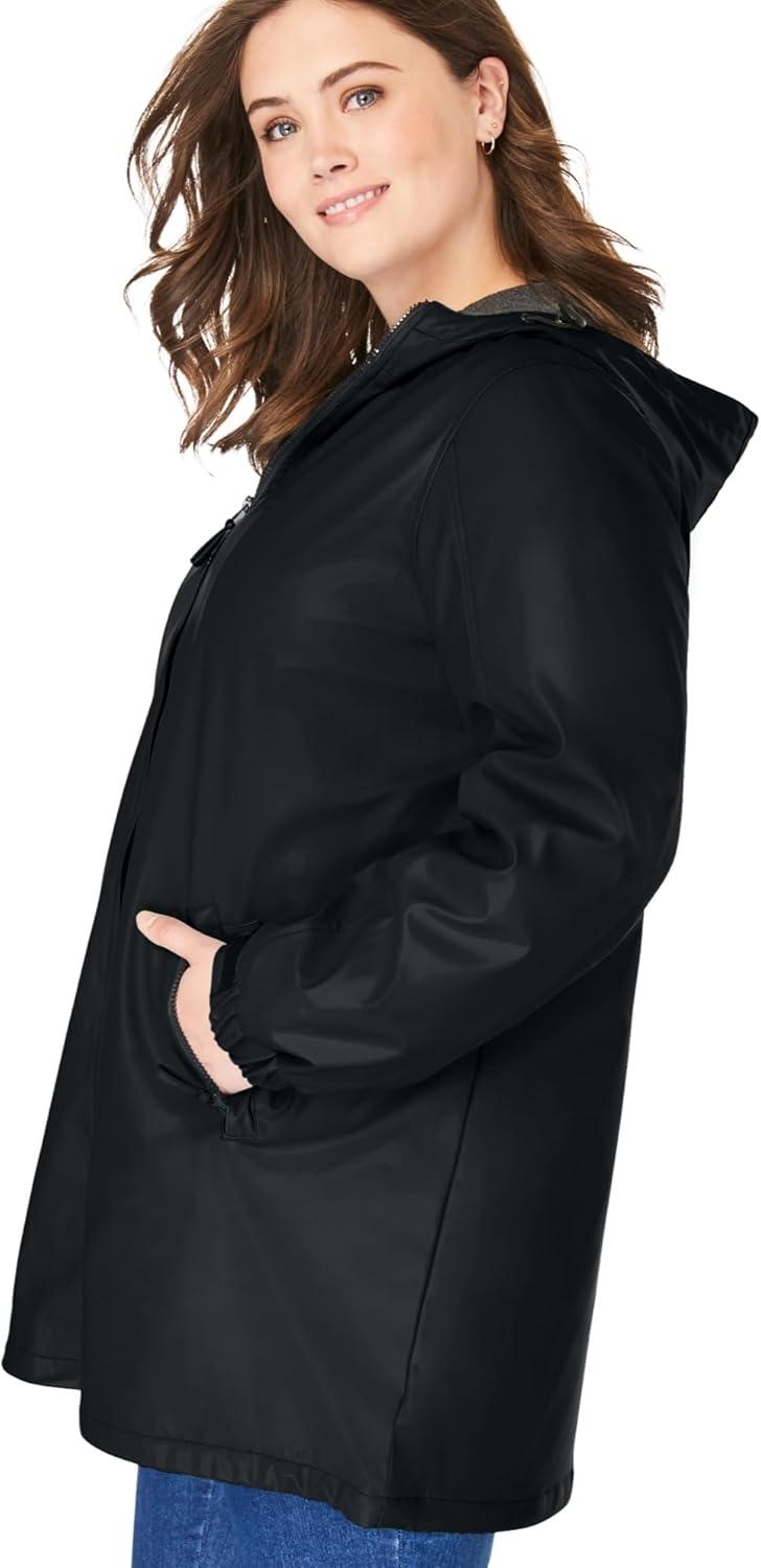 Woman Within Plus Size Hooded Slicker Raincoat(Black)