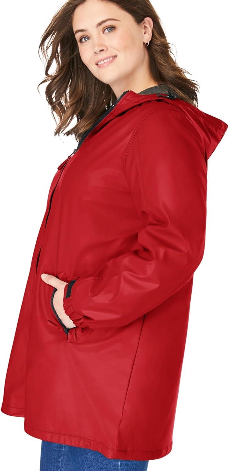 Woman Within Plus Size Hooded Slicker Raincoat(Classic Red)