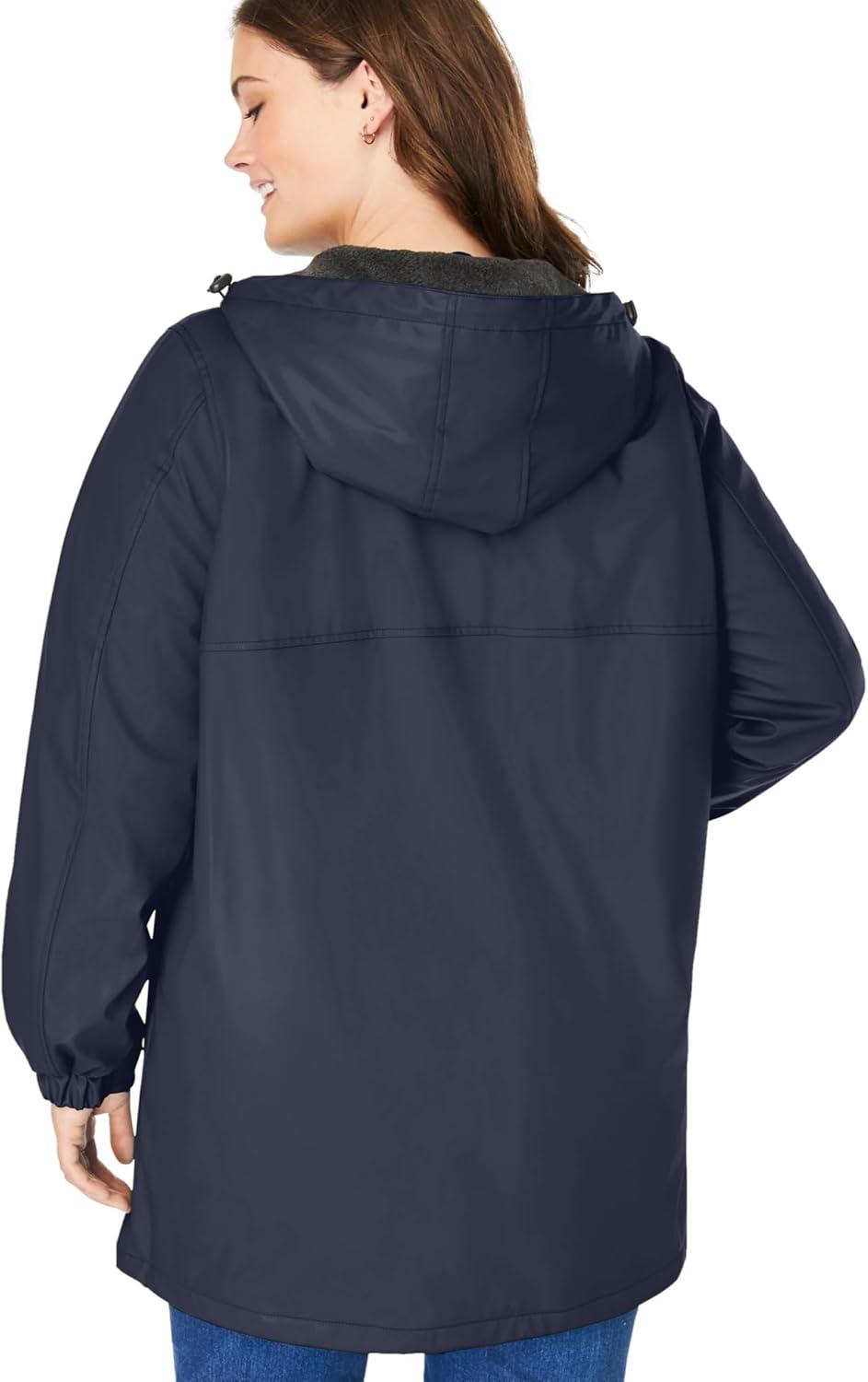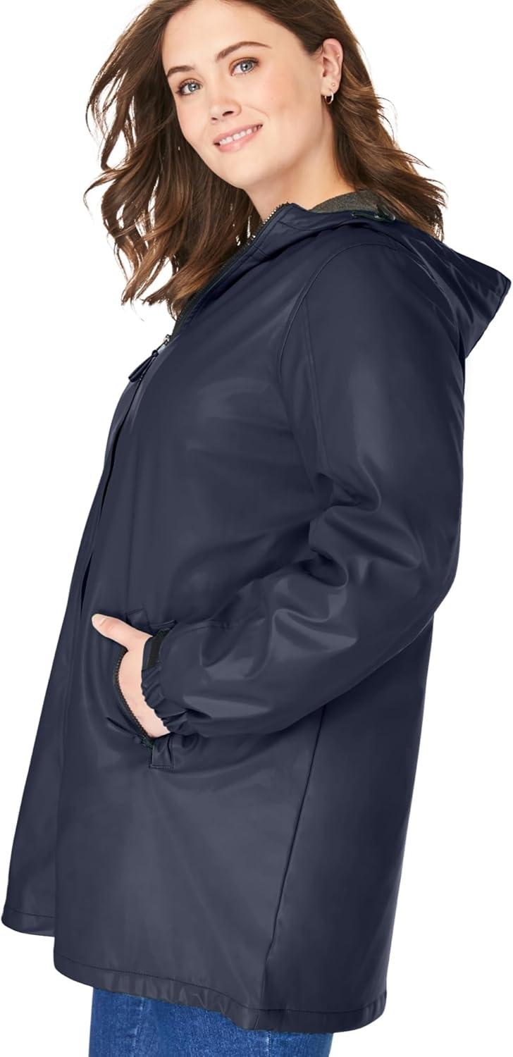 Woman Within Plus Size Hooded Slicker Raincoat(Navy)