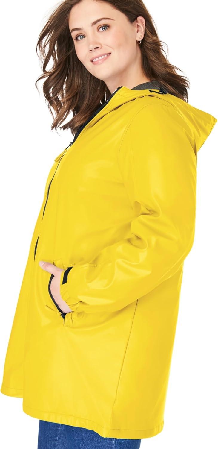 Woman Within Plus Size Hooded Slicker Raincoat(Primrose Yellow)