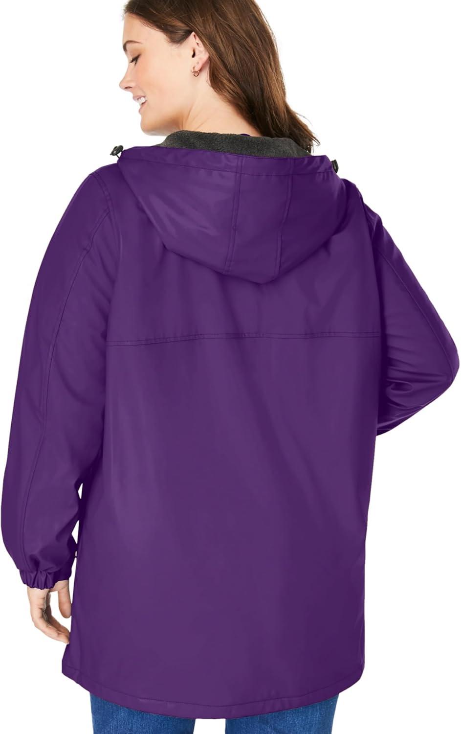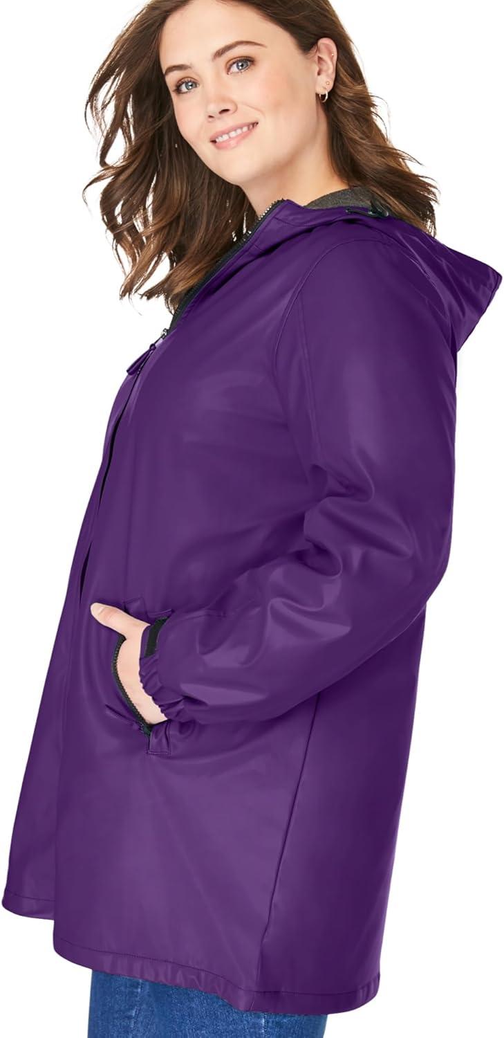 Woman Within Plus Size Hooded Slicker Raincoat(Radiant Purple)