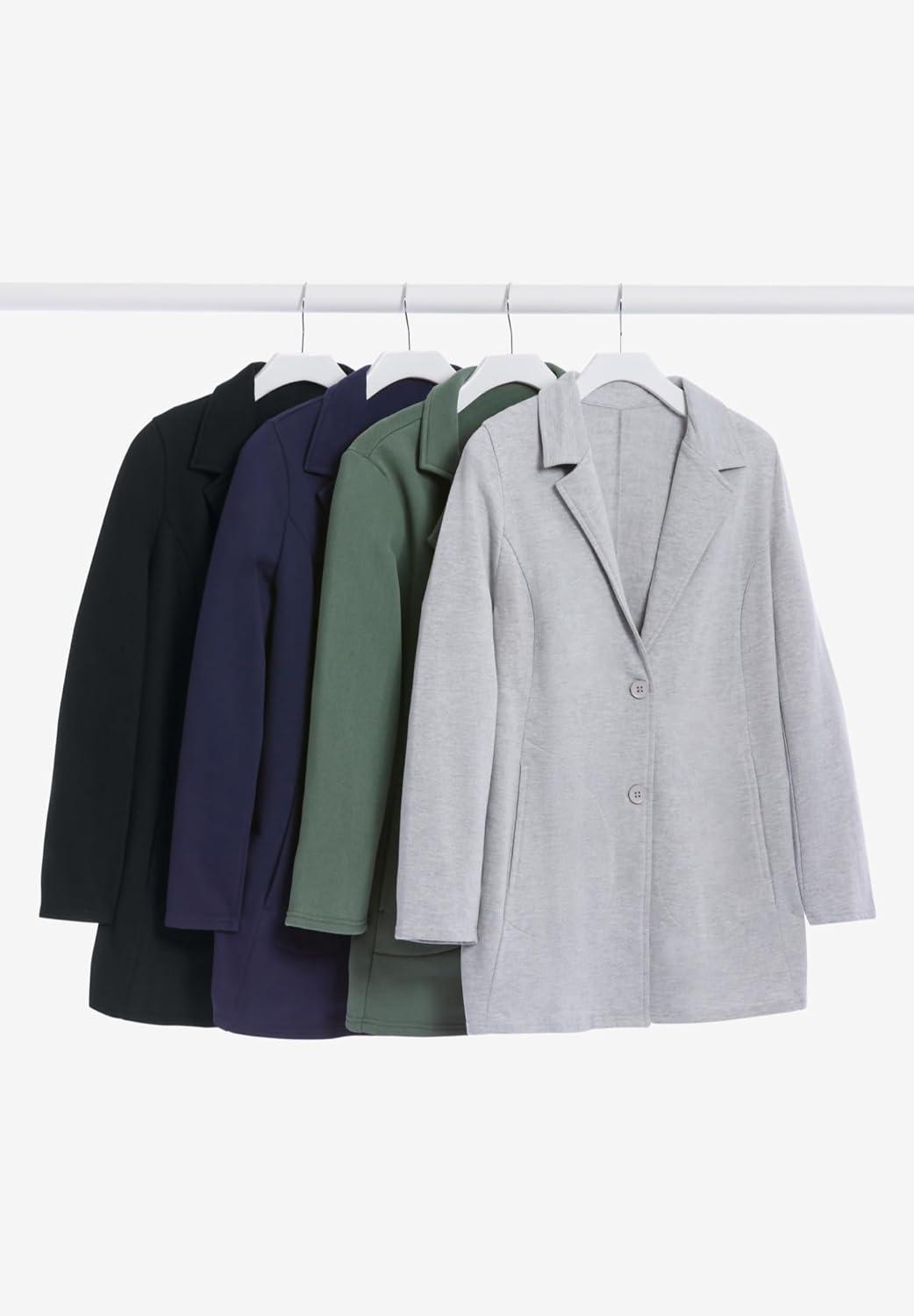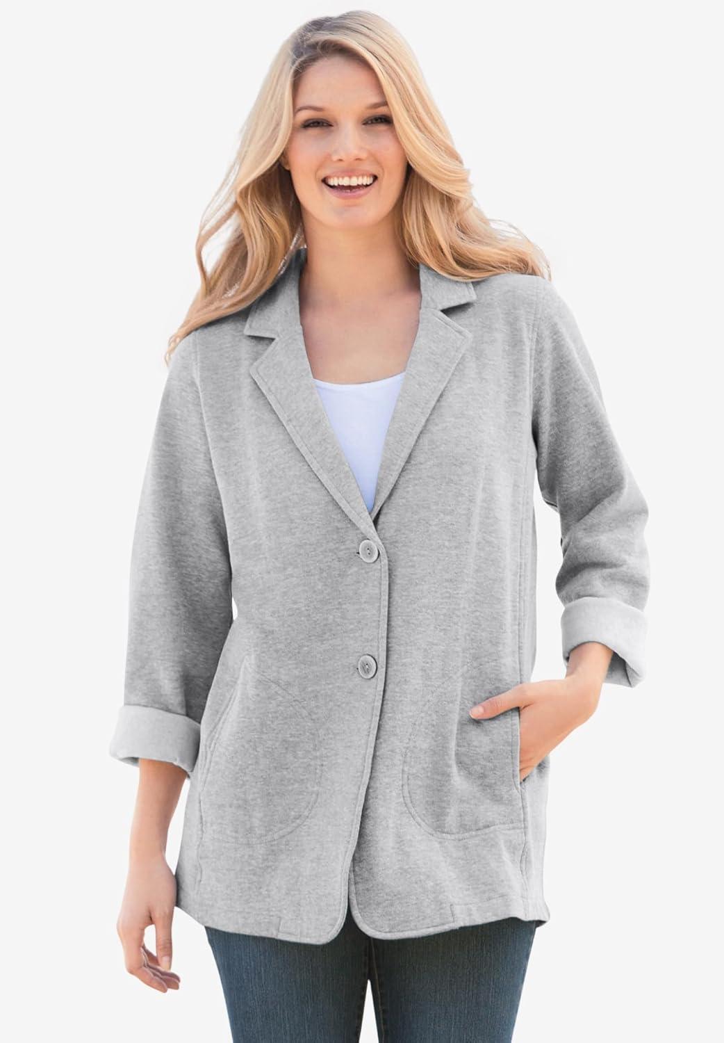 • Woman Within Plus Size Knit Blazer Oversized Work & Casual(Heather Grey)
