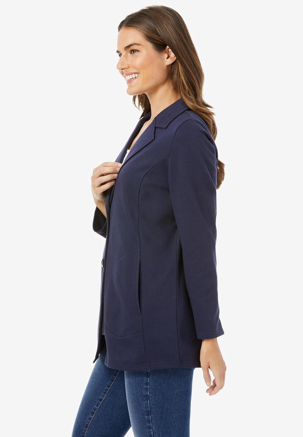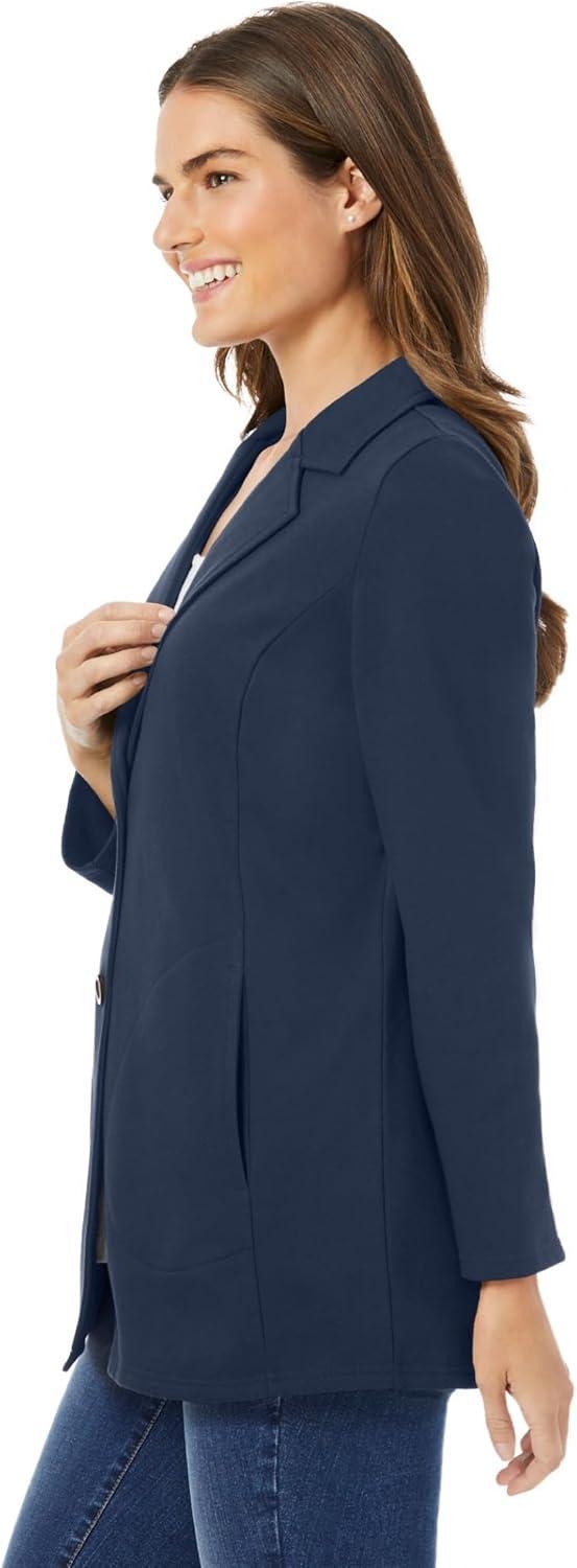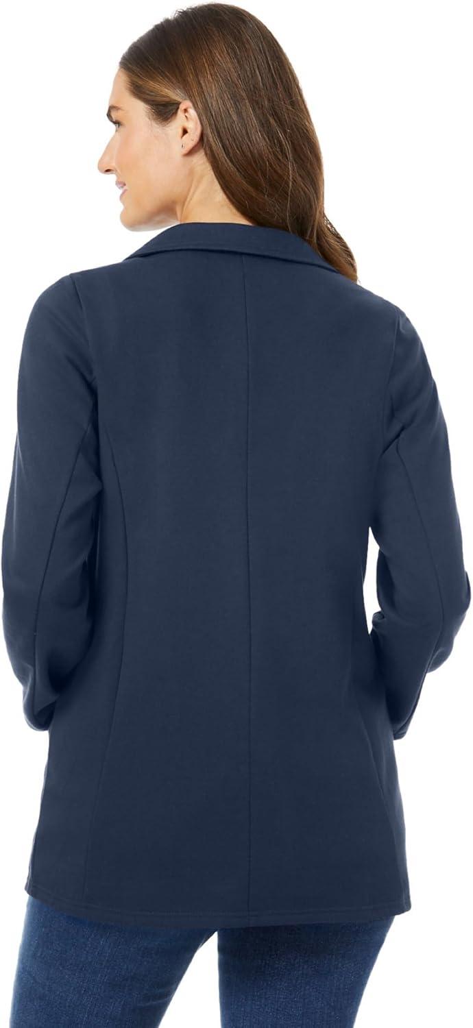 • Woman Within Plus Size Knit Blazer Oversized Work & Casual(Navy)