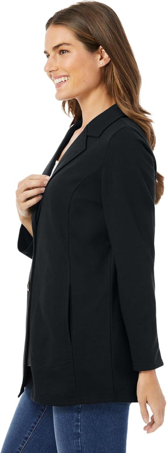 • Woman Within Plus Size Knit Blazer Oversized Work & Casual(Black)