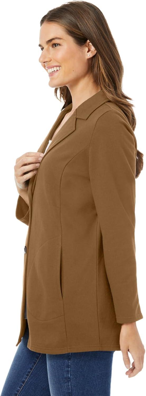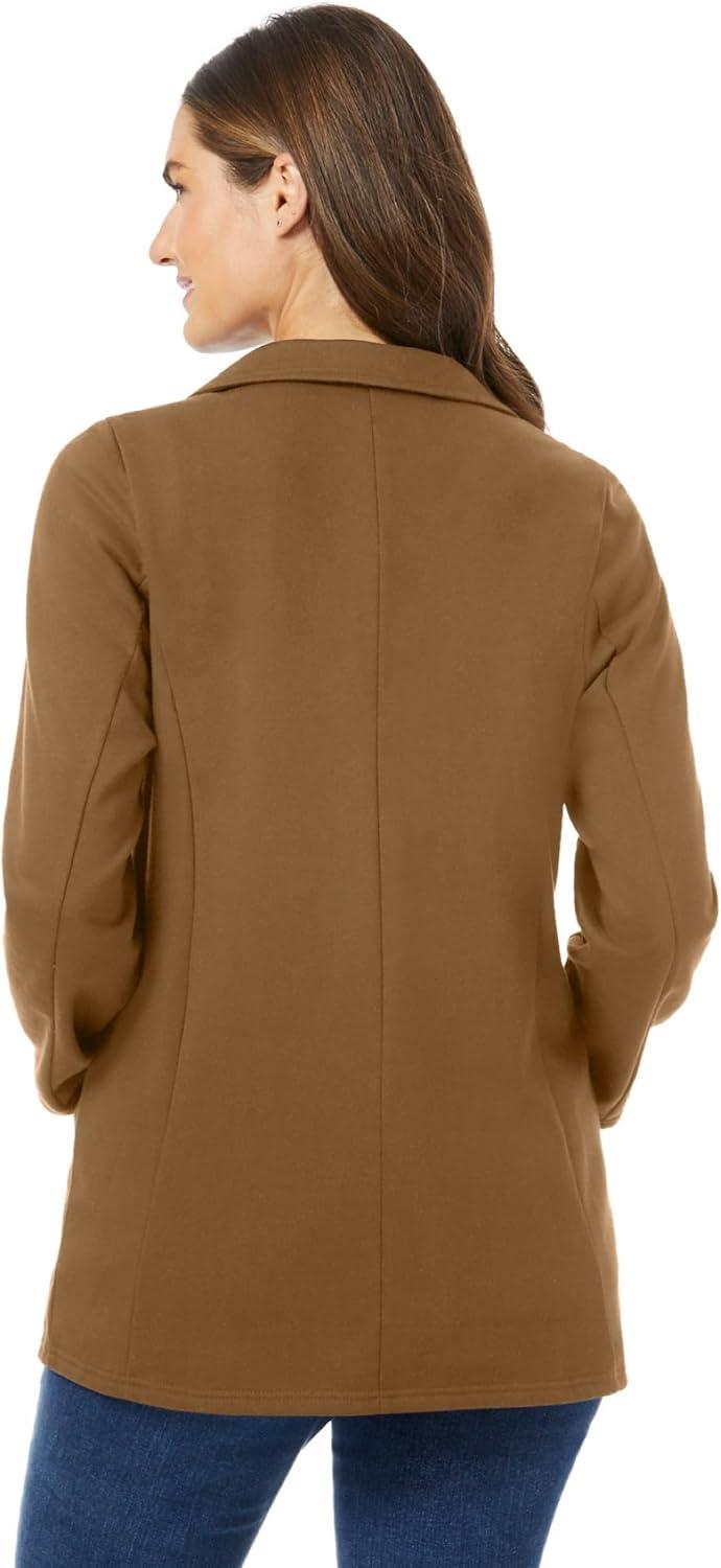 • Woman Within Plus Size Knit Blazer Oversized Work & Casual(Toffee)