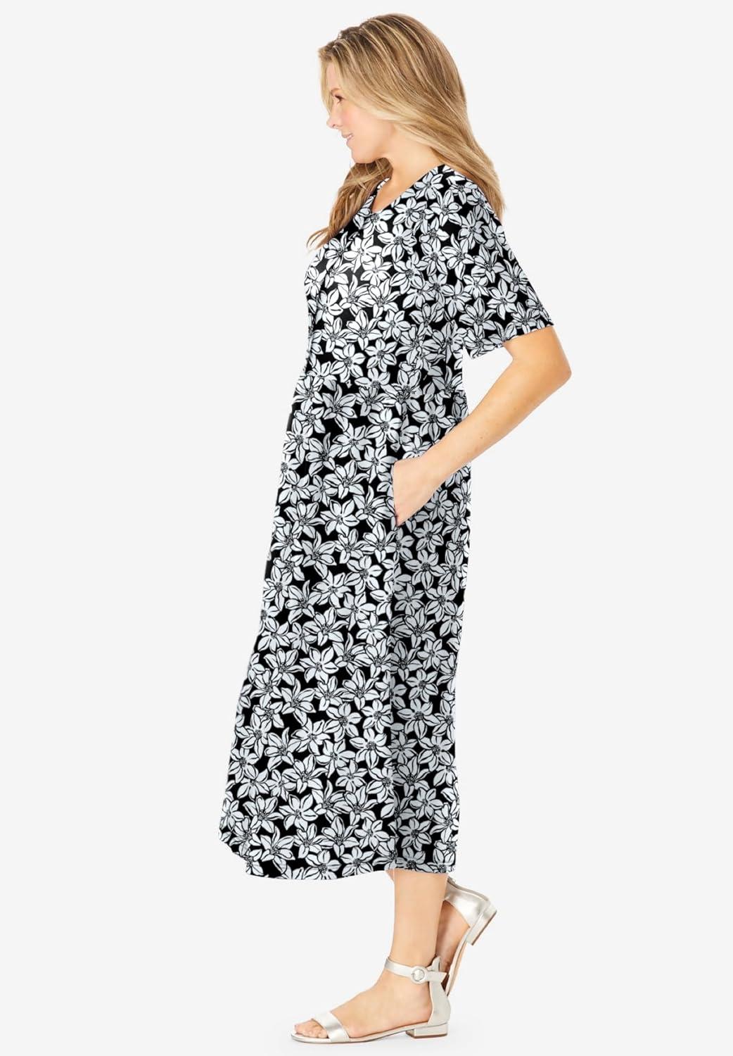 Woman Within Plus Size Short-Sleeve Button-Front Pocket Dress (Petite Available) – 6X, Black Blossom