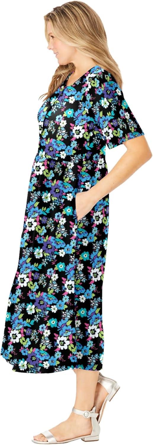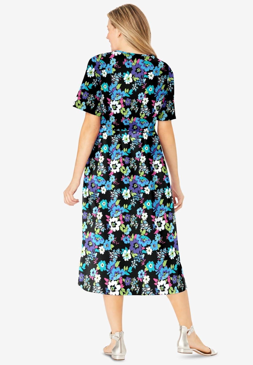 Woman Within Women’s Plus Size Button-Front Essential Dress – 4X, Black Multi Garden