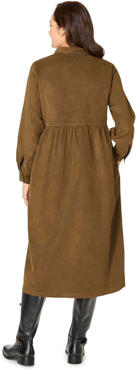 Woman Within Plus Size Button Front Corduroy Dress(Toffee)