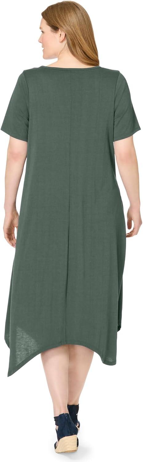 Woman Within Plus Size Curved Hem Dress(Olive Green)