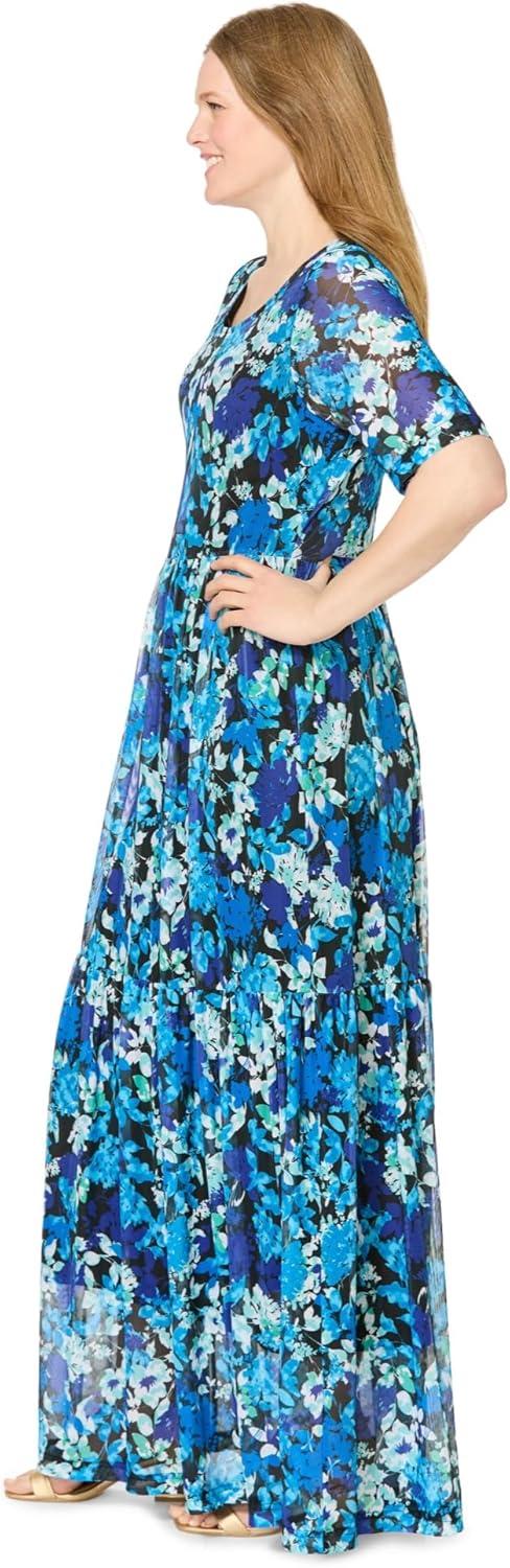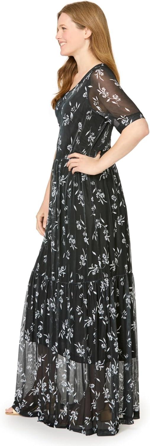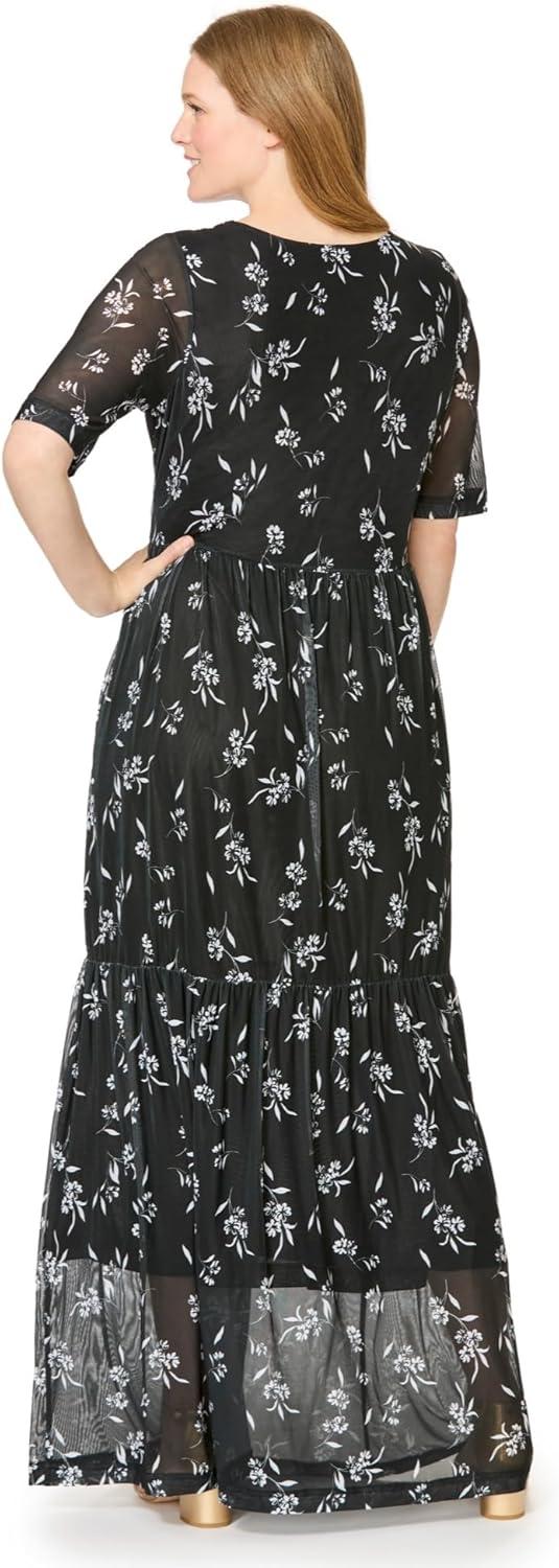 Woman Within Plus Size Miracle Mesh Maxi Dress(Black Watercolor Flowers)
