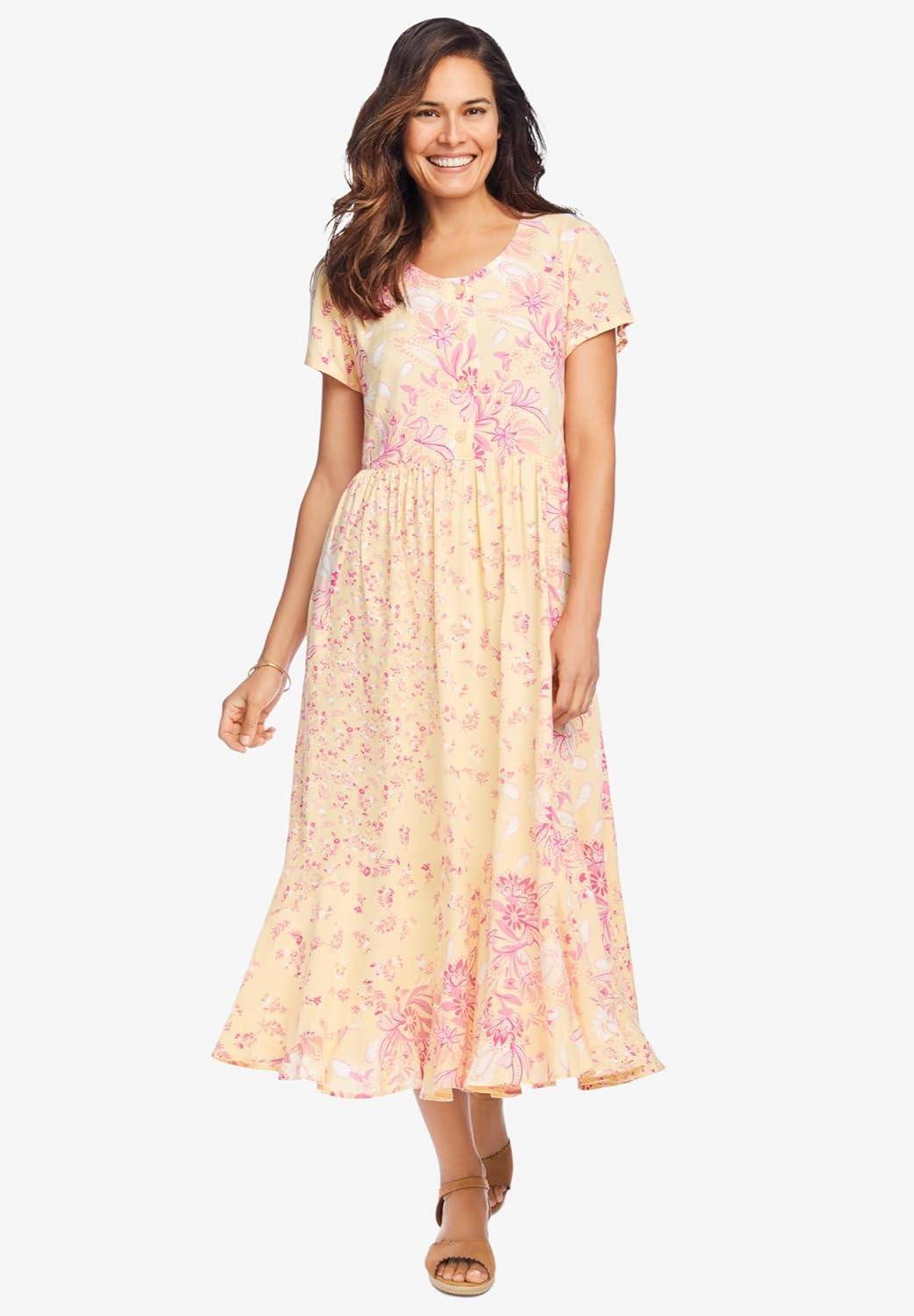 Woman Within Plus Size Curved Hem Dress(Delicate Pink)