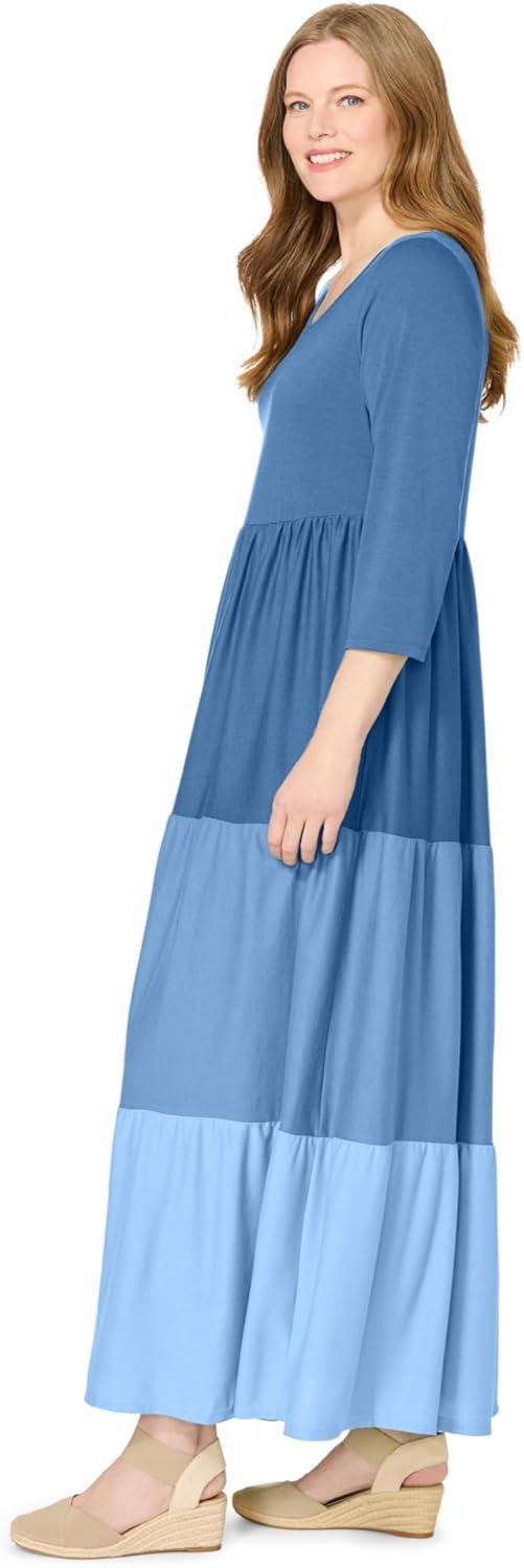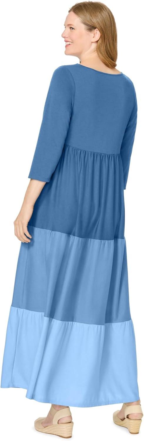 Woman Within Plus Size Colorblock Tiered Dress(Blue Coast Colorblock)