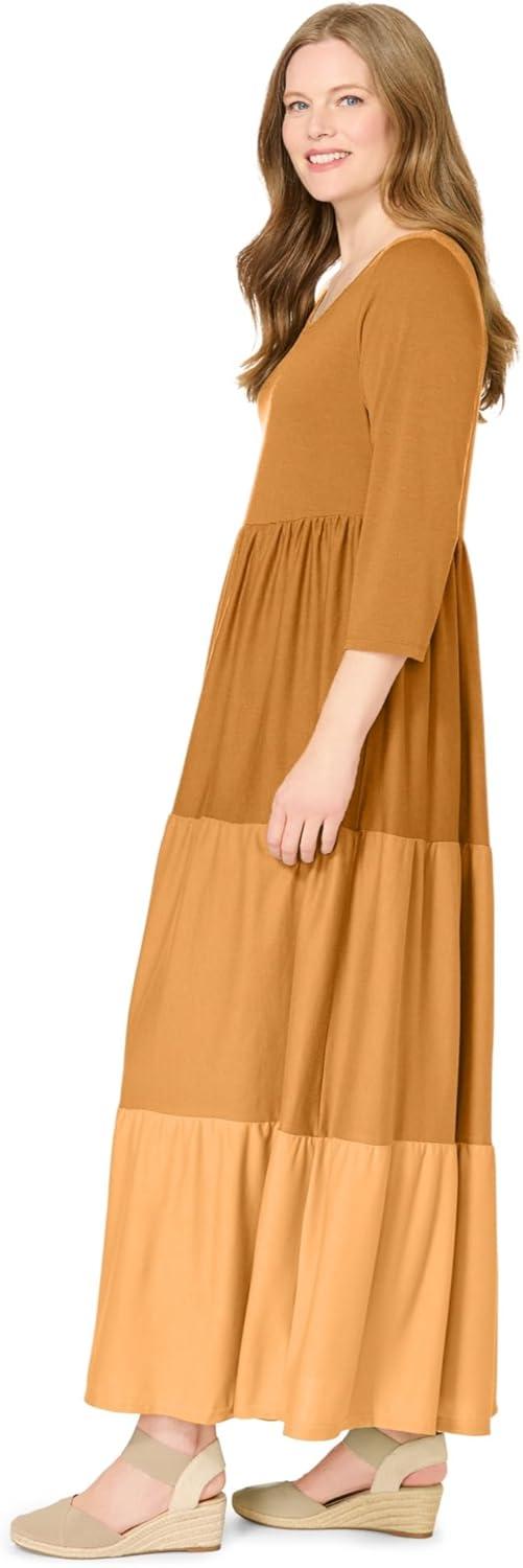 Woman Within Plus Size Colorblock Tiered Dress(Honey Glaze Colorblock)