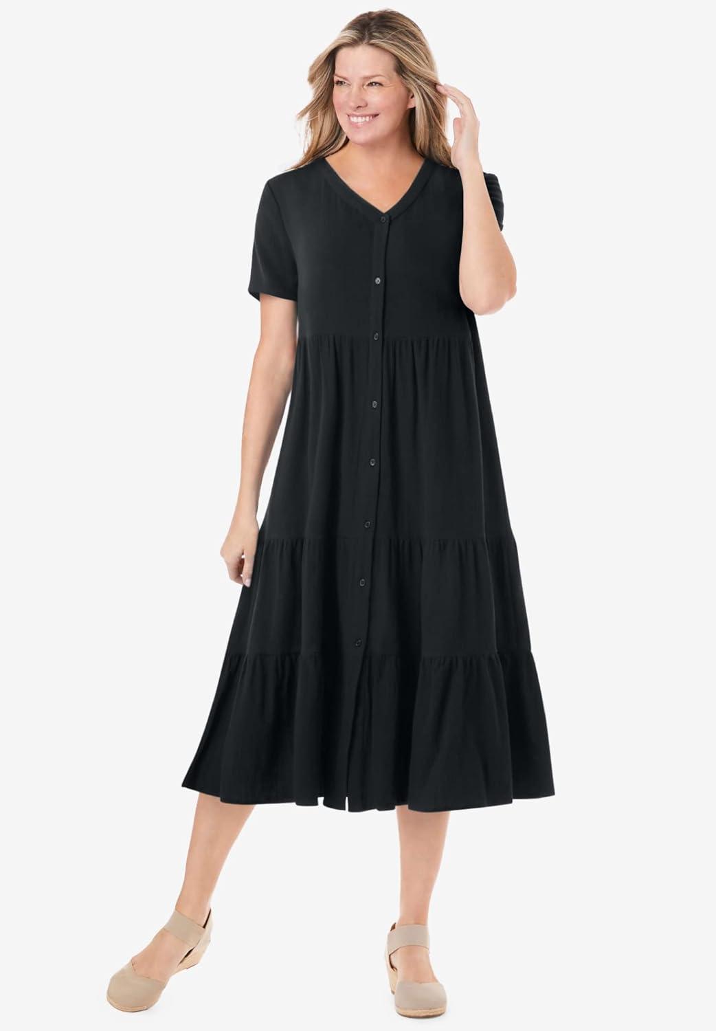 Woman Within Plus Size Colorblock Tiered Dress(Black Colorblock)