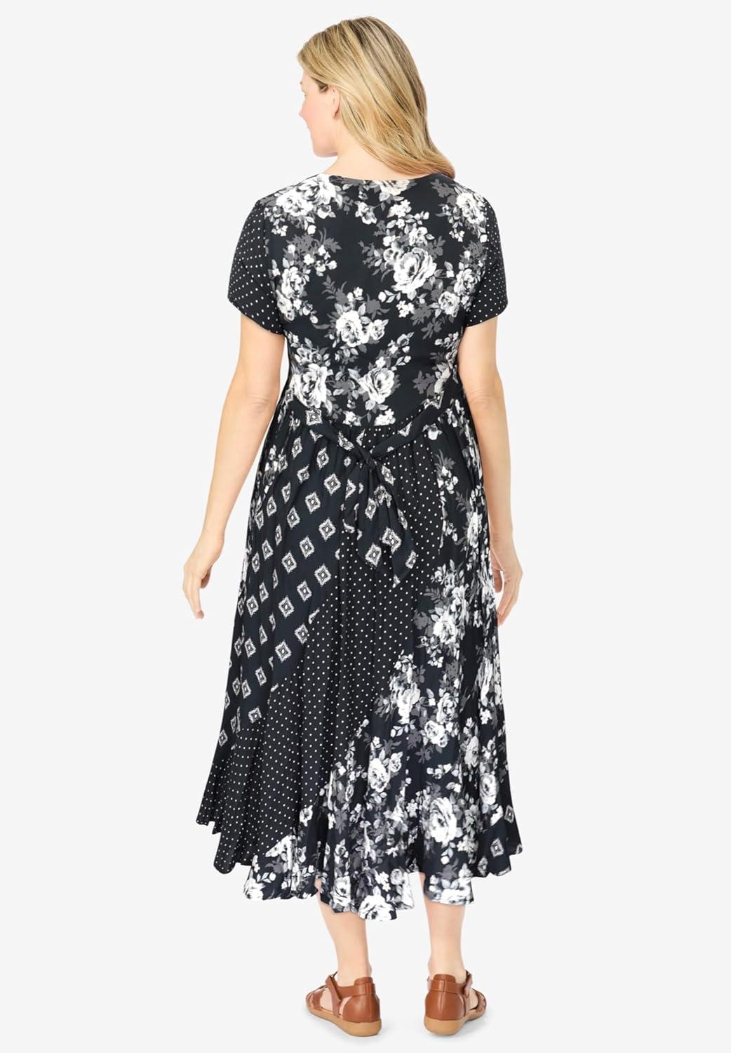 Woman Within Plus Size Mixed Print Maxi Dress(Black White Pretty Rose)