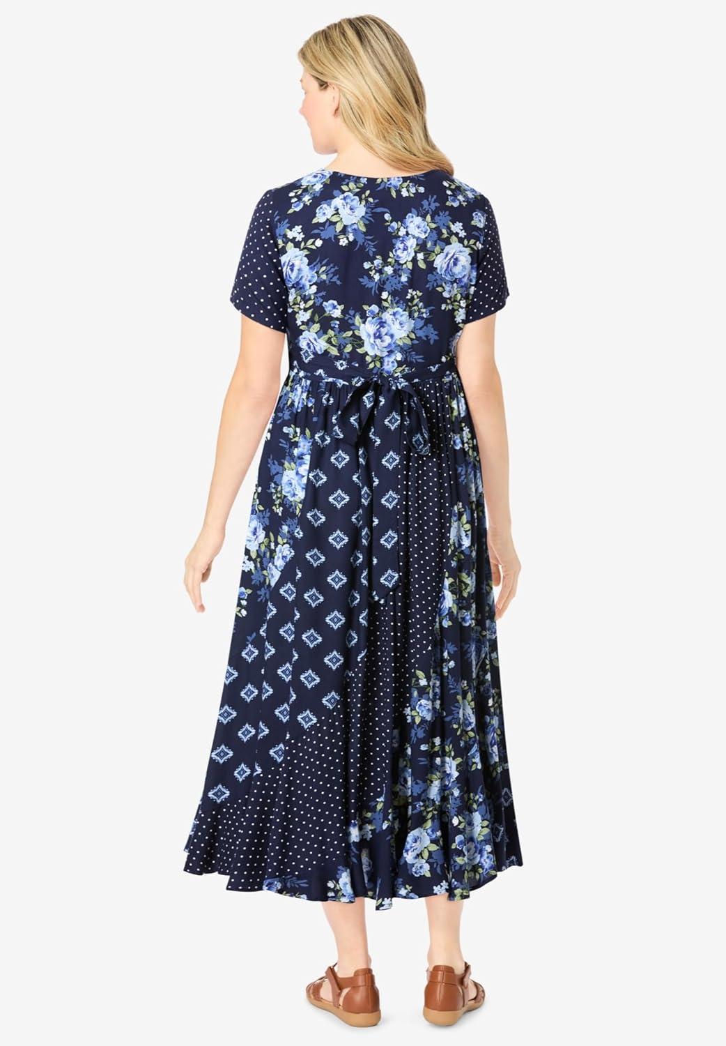 • Woman Within Plus Size Mixed Print Maxi Dress(Navy Pretty Rose)