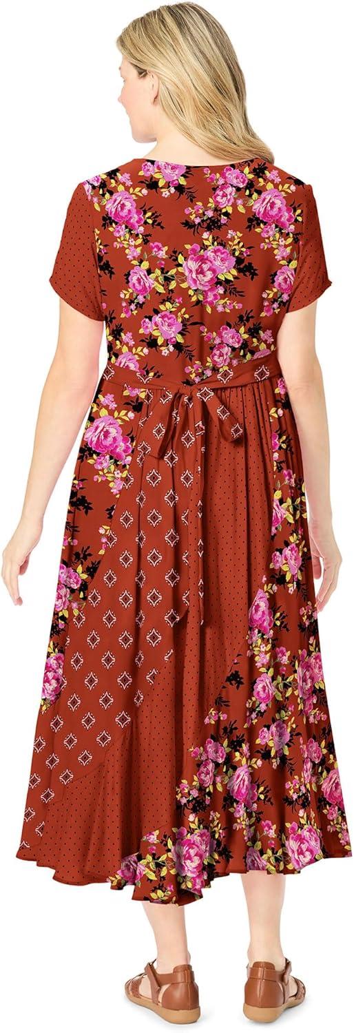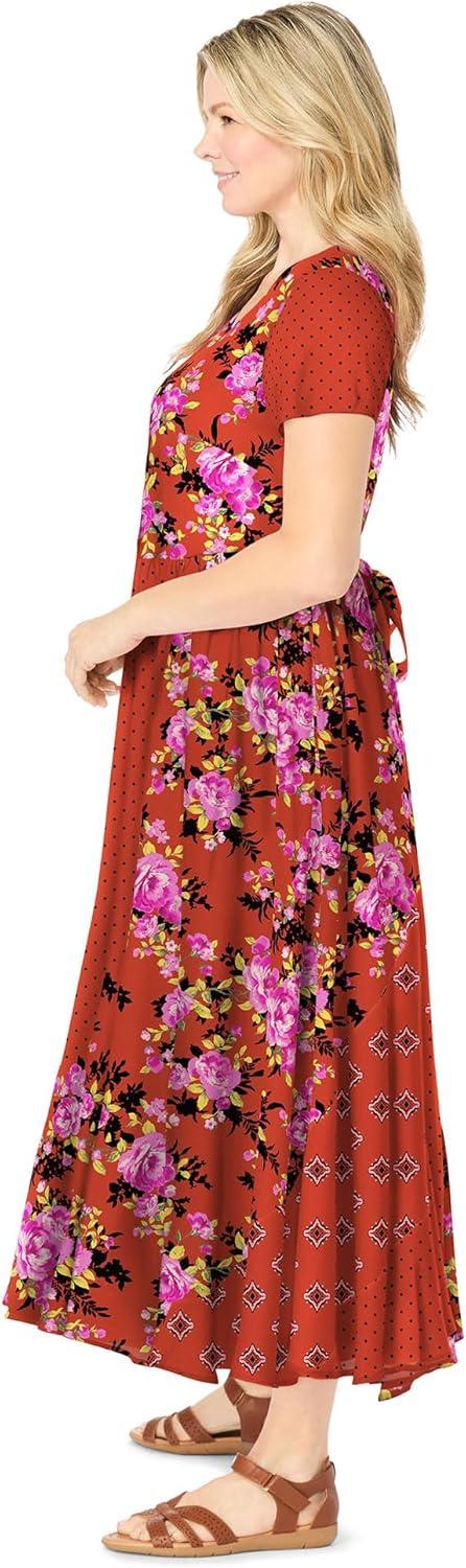 Woman Within Plus Size Mixed Print Maxi Dress(Red Ochre Pretty Rose)