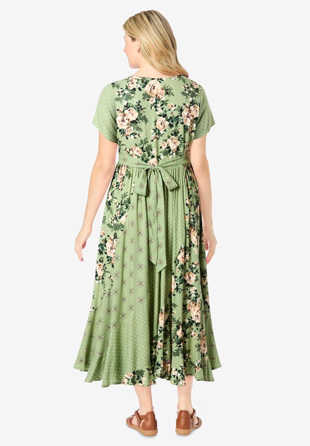 • Woman Within Plus Size Mixed Print Maxi Dress(Sage Pretty Rose)