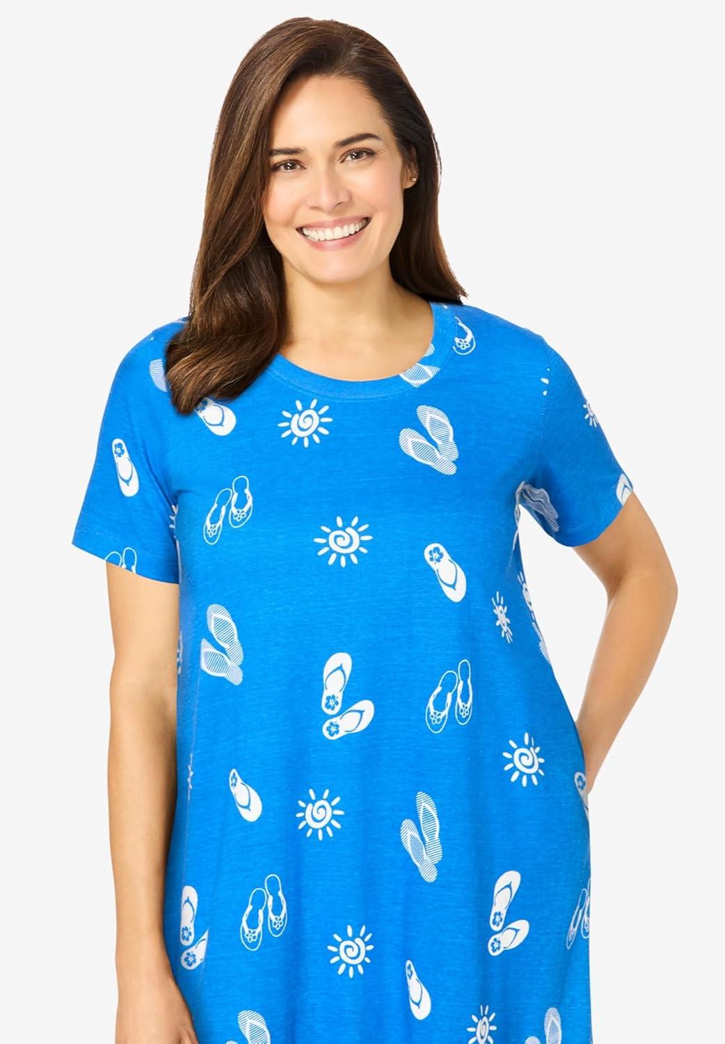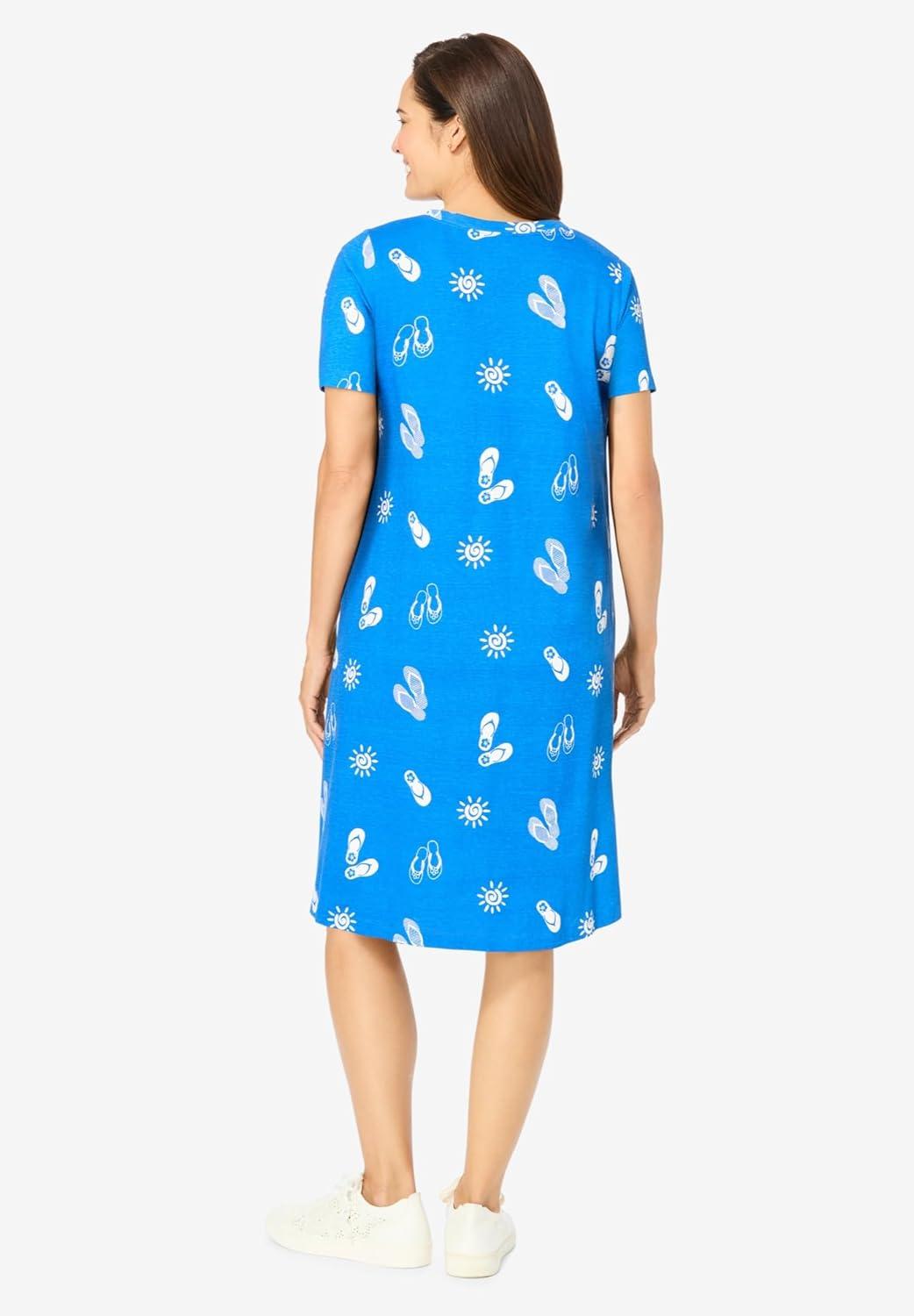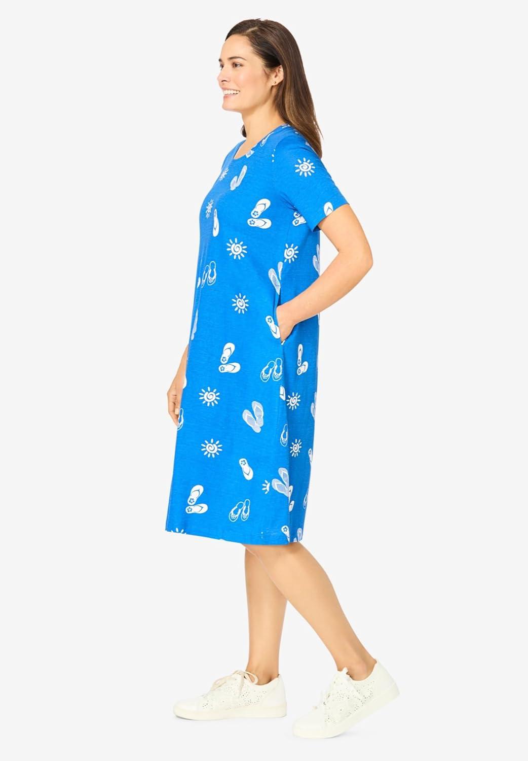 Woman Within Plus Size Perfect Short-Sleeve Crewneck Tee Dress(Bright Cobalt Flip Flops)