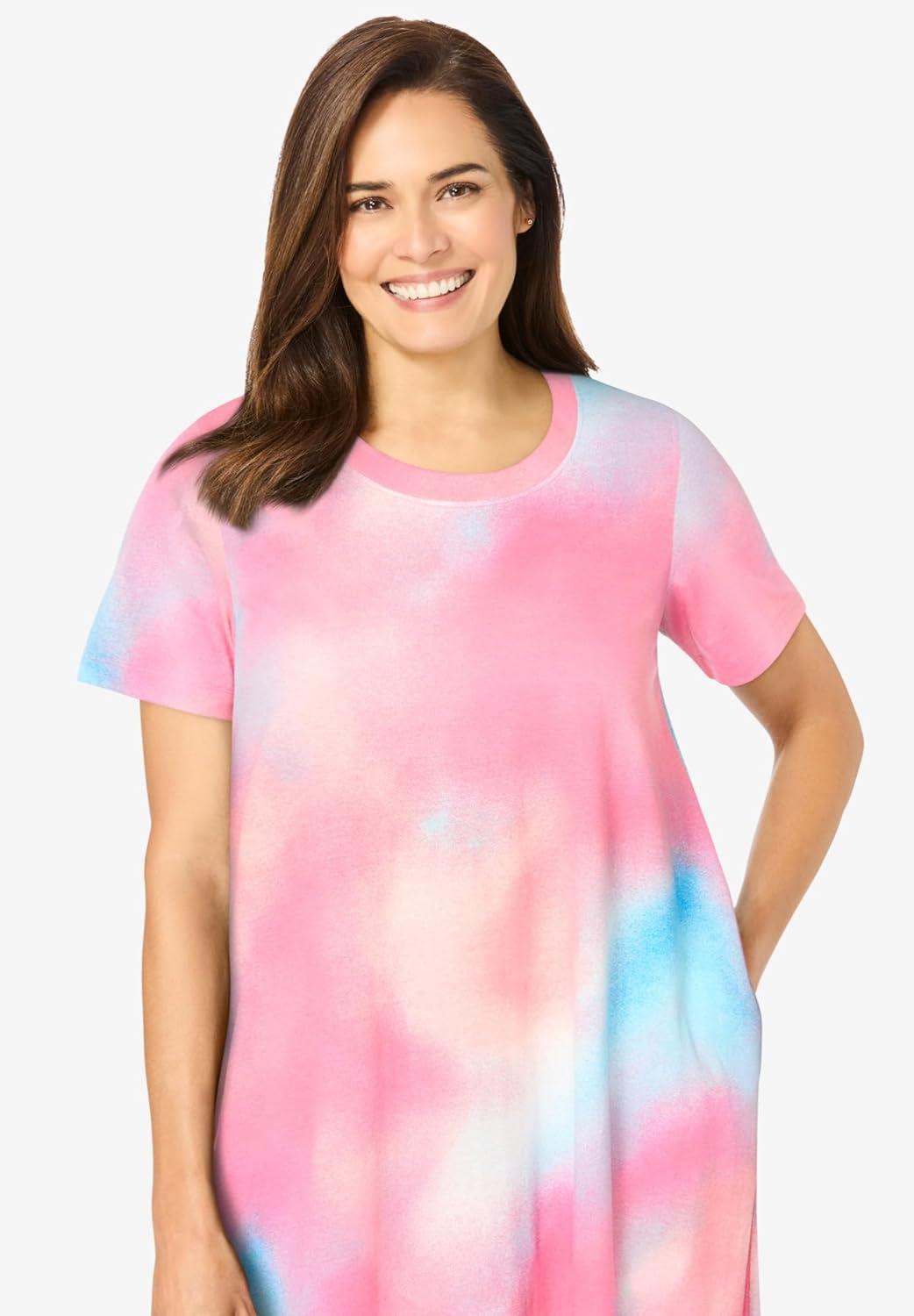 Woman Within Plus Size Perfect Short-Sleeve Crewneck Tee Dress(Peony Petal Tie Dye)