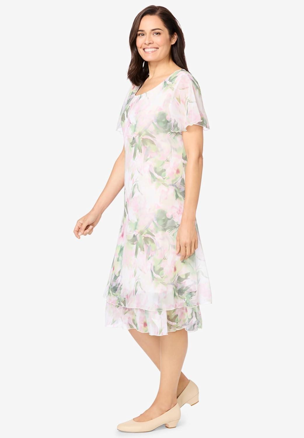 • Woman Within Plus Size Overlay Tiered Dress(Sage Watercolor)