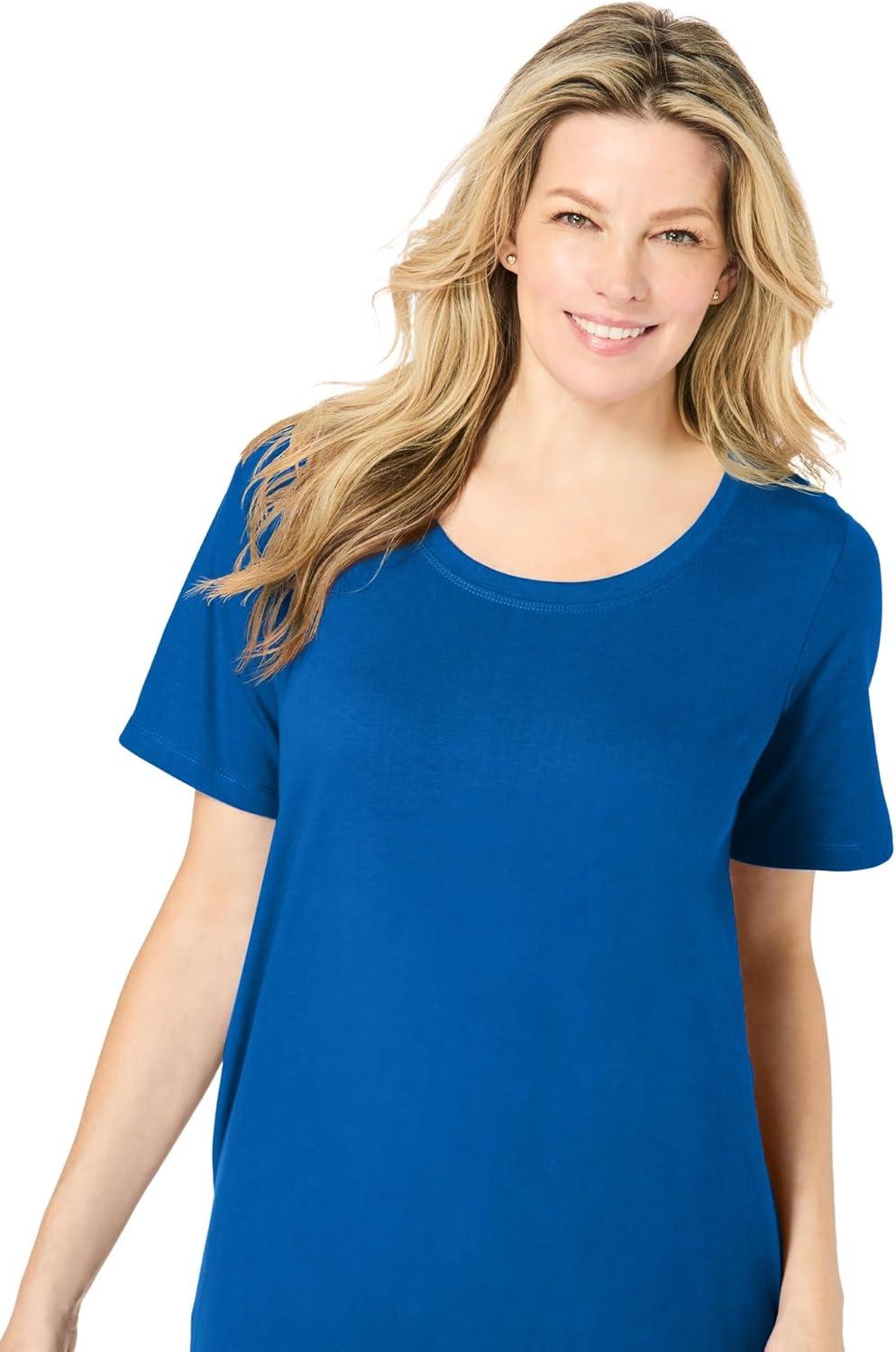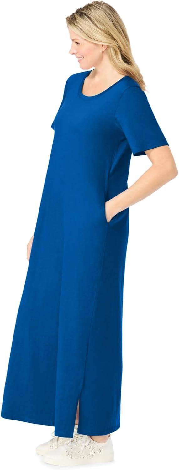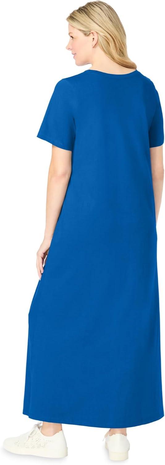 Woman Within Plus Size Perfect Short-Sleeve Scoopneck Maxi Tee Dress(Bright Cobalt)