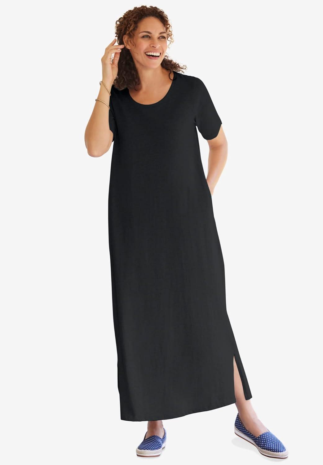 Woman Within Plus Size Perfect Short-Sleeve Scoopneck Maxi Tee Dress(Black)
