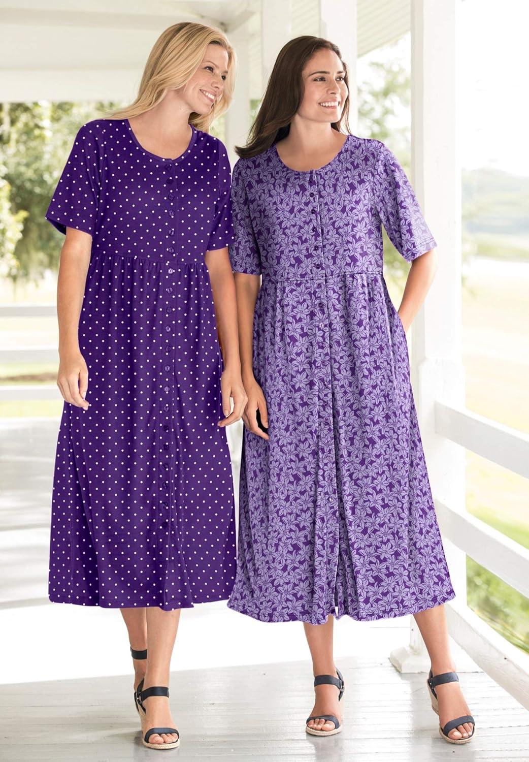 • Woman Within Plus Size Short-Sleeve Button-Front Pocket Dress (Petite Available) – 2X, Purple Garden
