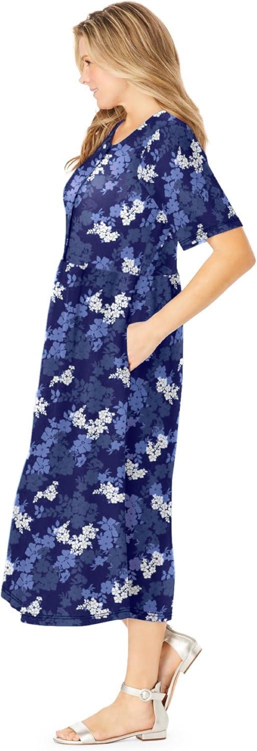 • Woman Within Plus Size Short-Sleeve Button-Front Pocket Dress (Petite Available) – 3X, Blue Blossom