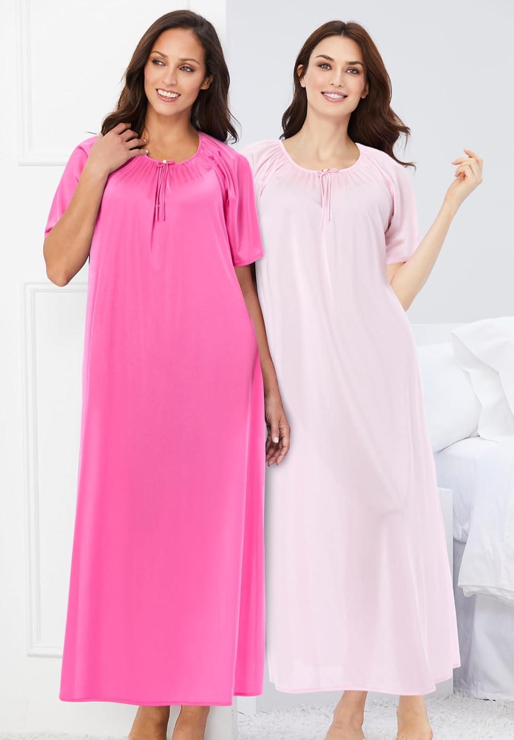 • Only Necessities Plus Size 2-Pack Long Silky Gown(Paradise Pink Pink)