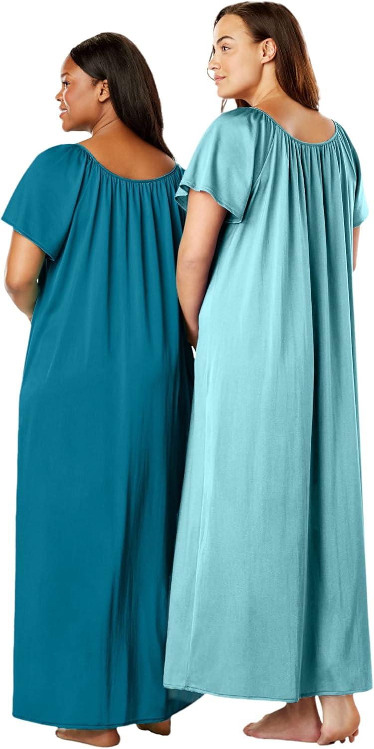 Only Necessities Plus Size 2-Pack Long Silky Gown(Deep Teal Pale Ocean)