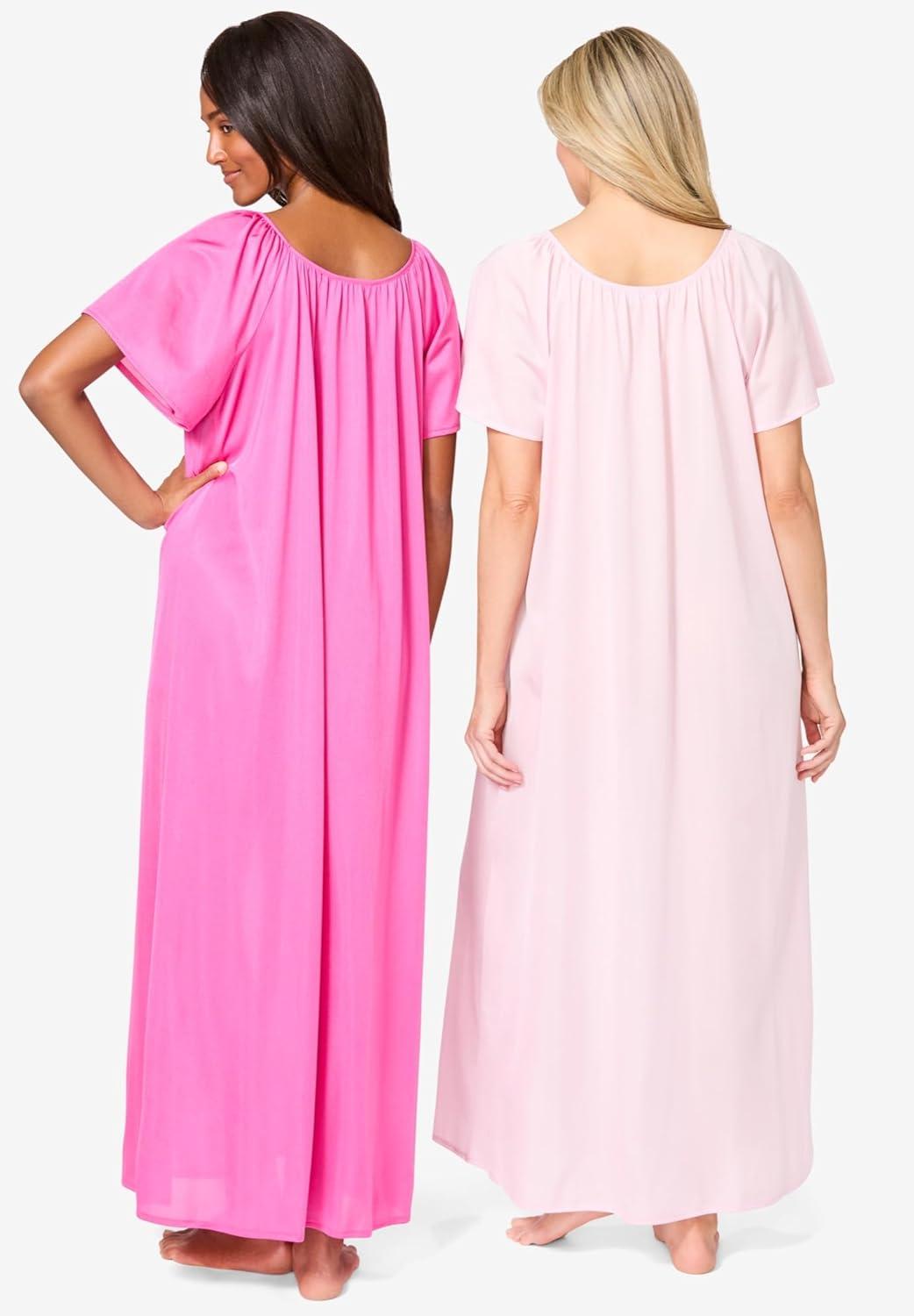 Only Necessities Plus Size 2-Pack Long Silky Gown(Paradise Pink Pink)