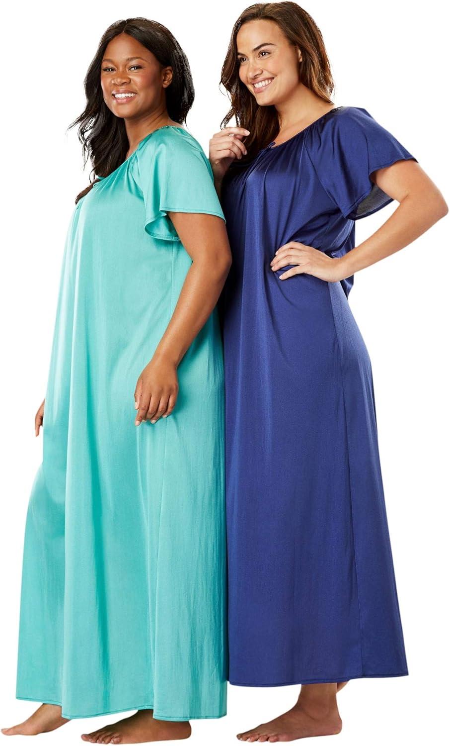 • Only Necessities Plus Size 2-Pack Long Silky Gown(Deep Teal Pale Ocean)