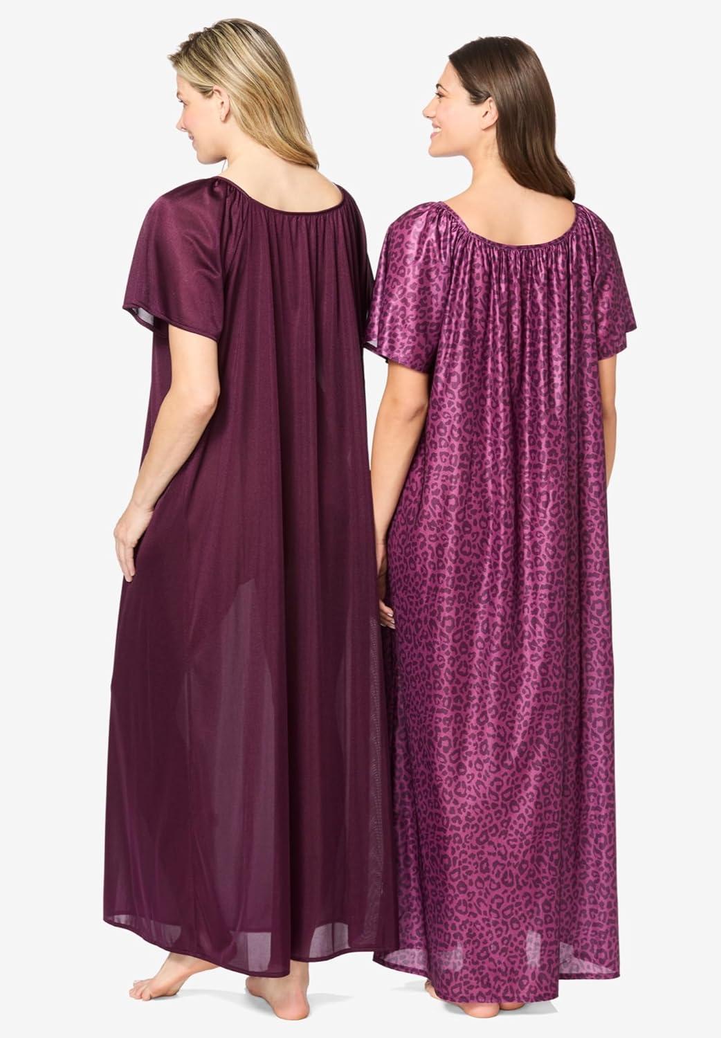 • Only Necessities Plus Size 2-Pack Long Silky Gown(Plum Burst Soft Iris)