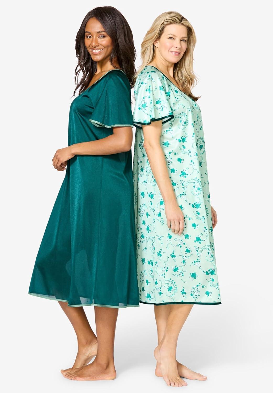• Only Necessities Plus Size 2-Pack Short Silky Gown(Iced Mint Floral)