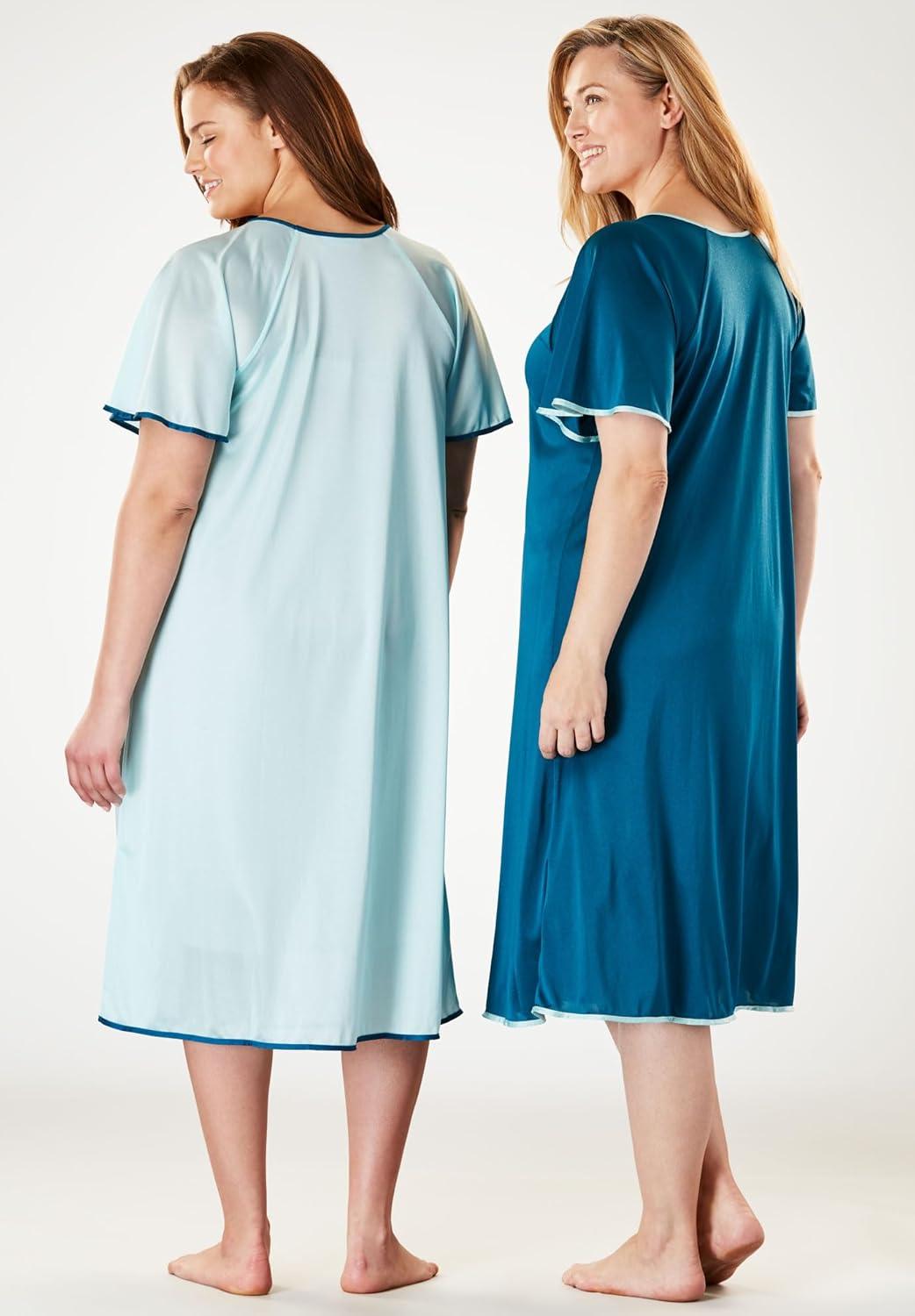 • Only Necessities Plus Size 2-Pack Short Silky Gown(Deep Teal Pale Ocean)