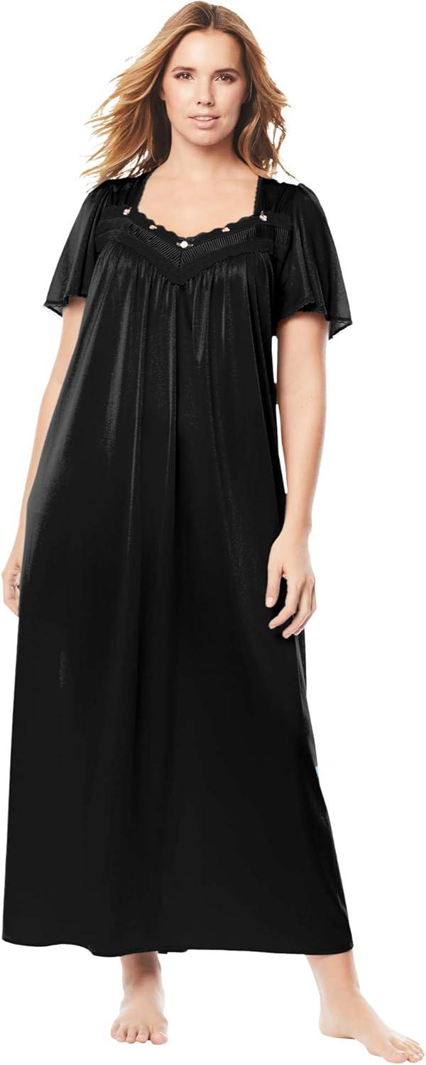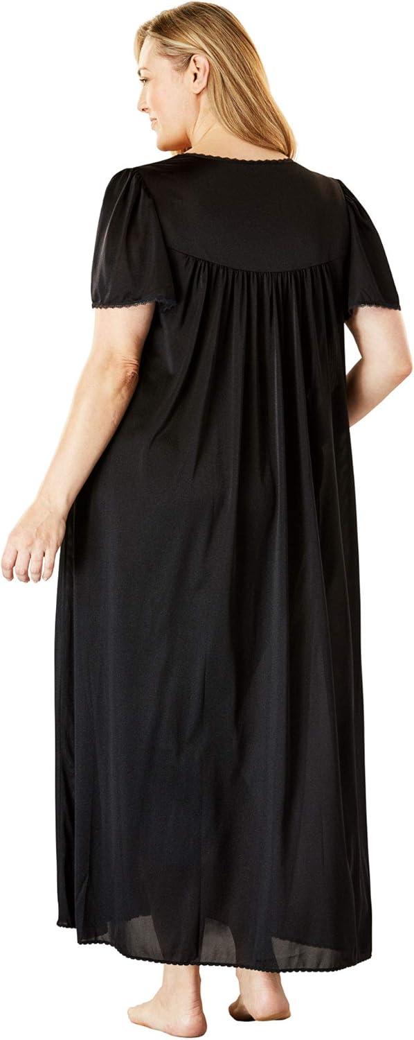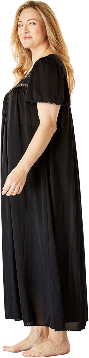 • Only Necessities Plus Size Long Silky Lace-Trim Gown(Black)