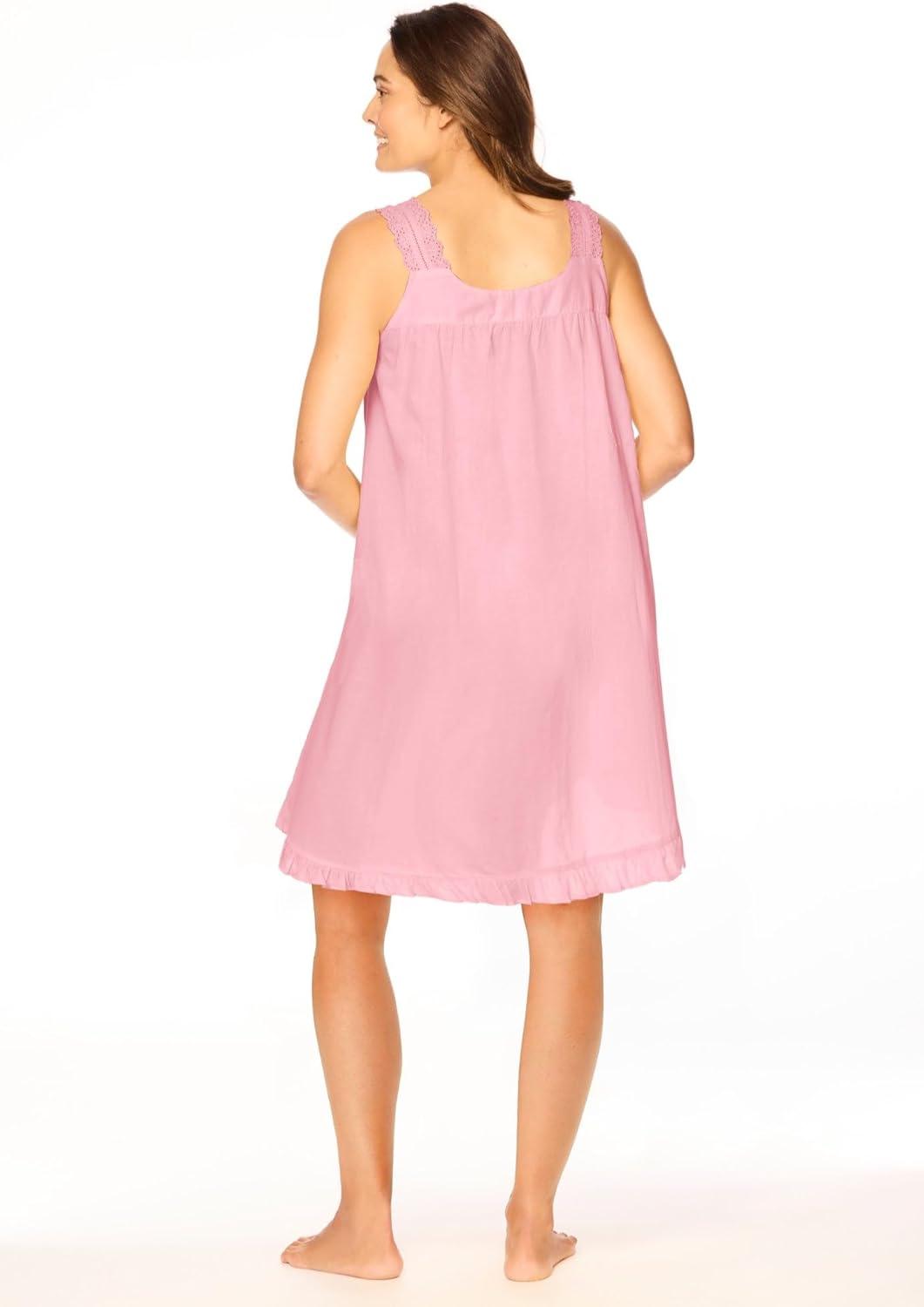 Dreams & Co. Plus Size Short Embroidered Nightgown(Rose Quartz)