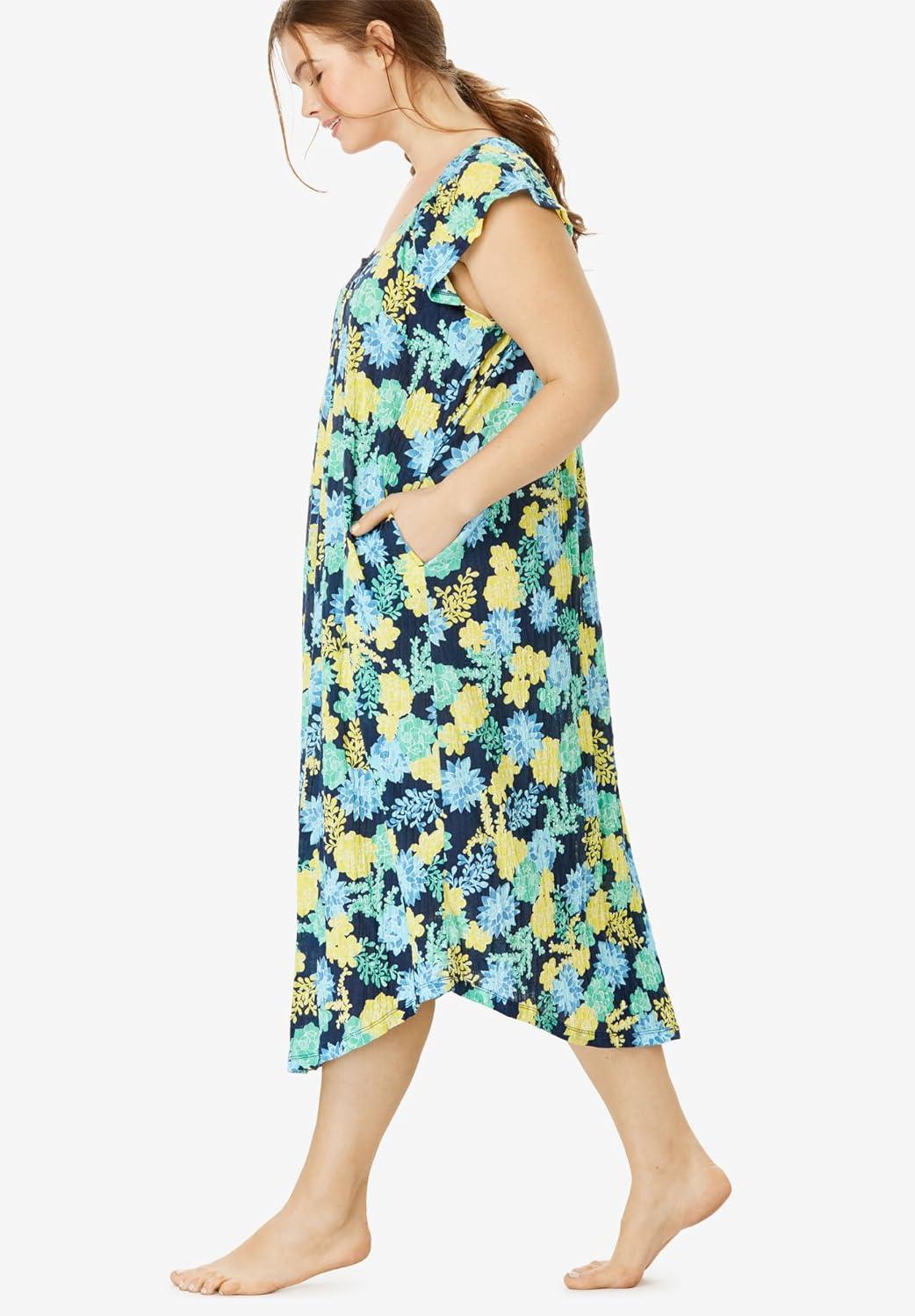 Dreams & Co. Plus Size Short Supportive Gown(Evening Blue Dot)