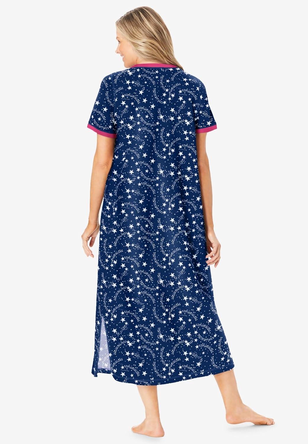 Dreams & Co. Plus Size Long Henley Sleepshirt(Evening Blue Stars)