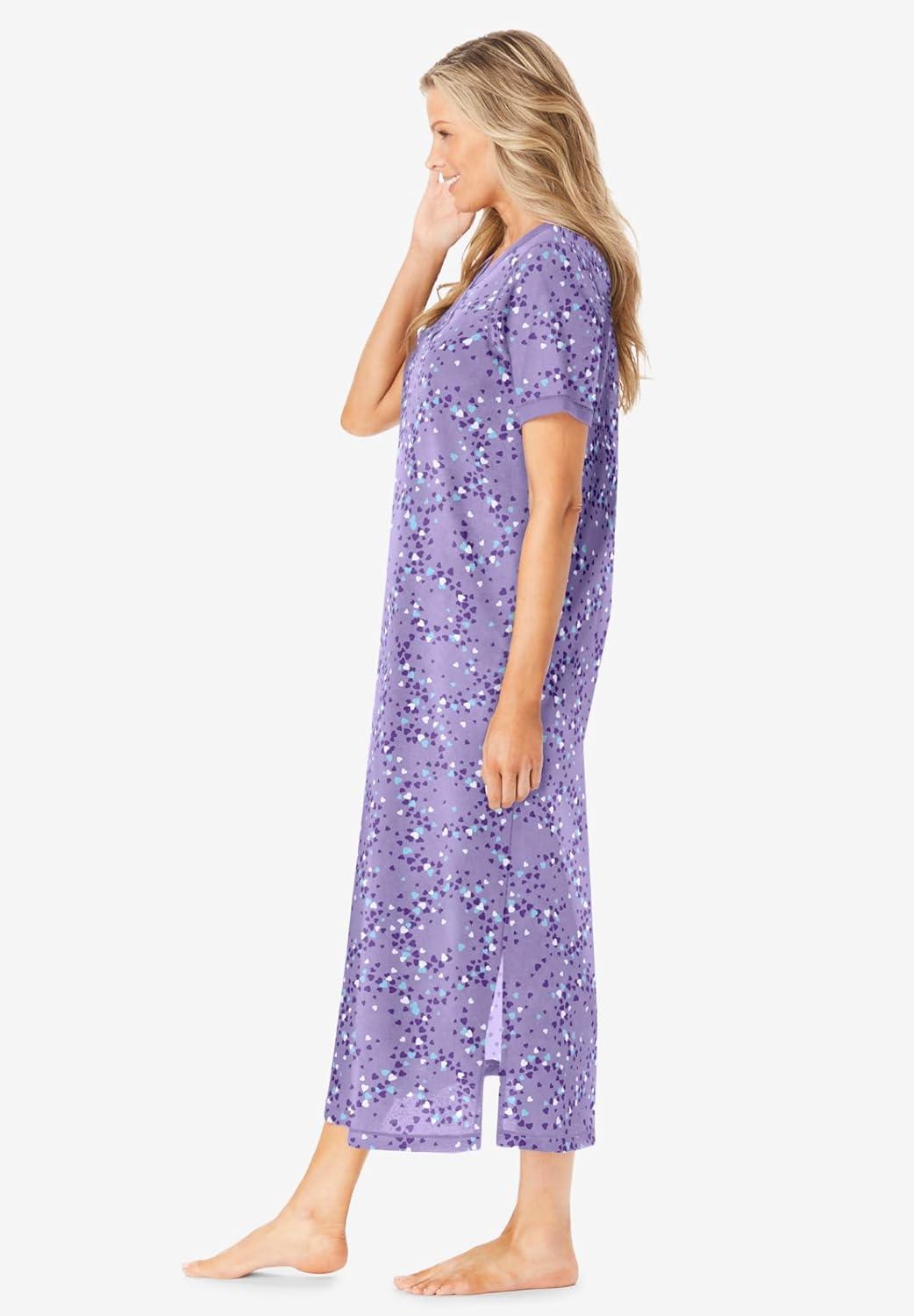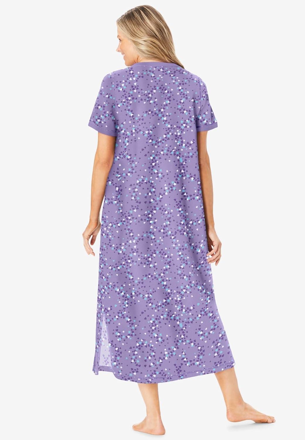 Dreams & Co. Plus Size Long Henley Sleepshirt(Soft Iris Hearts)