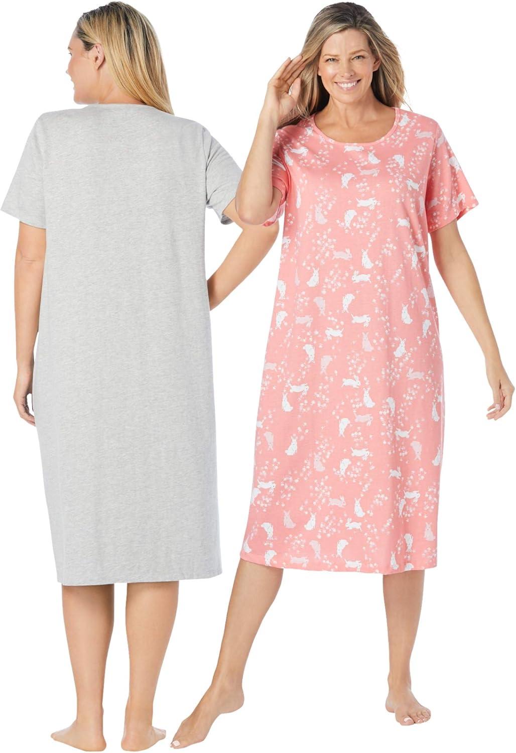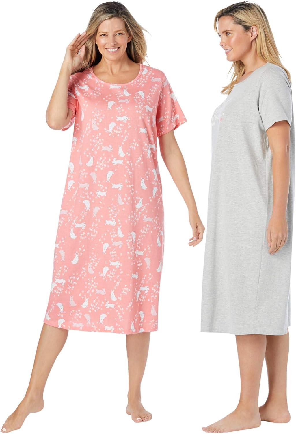 Dreams & Co. Plus Size 2-Pack Long Sleepshirts(Pink Tea Cup)
