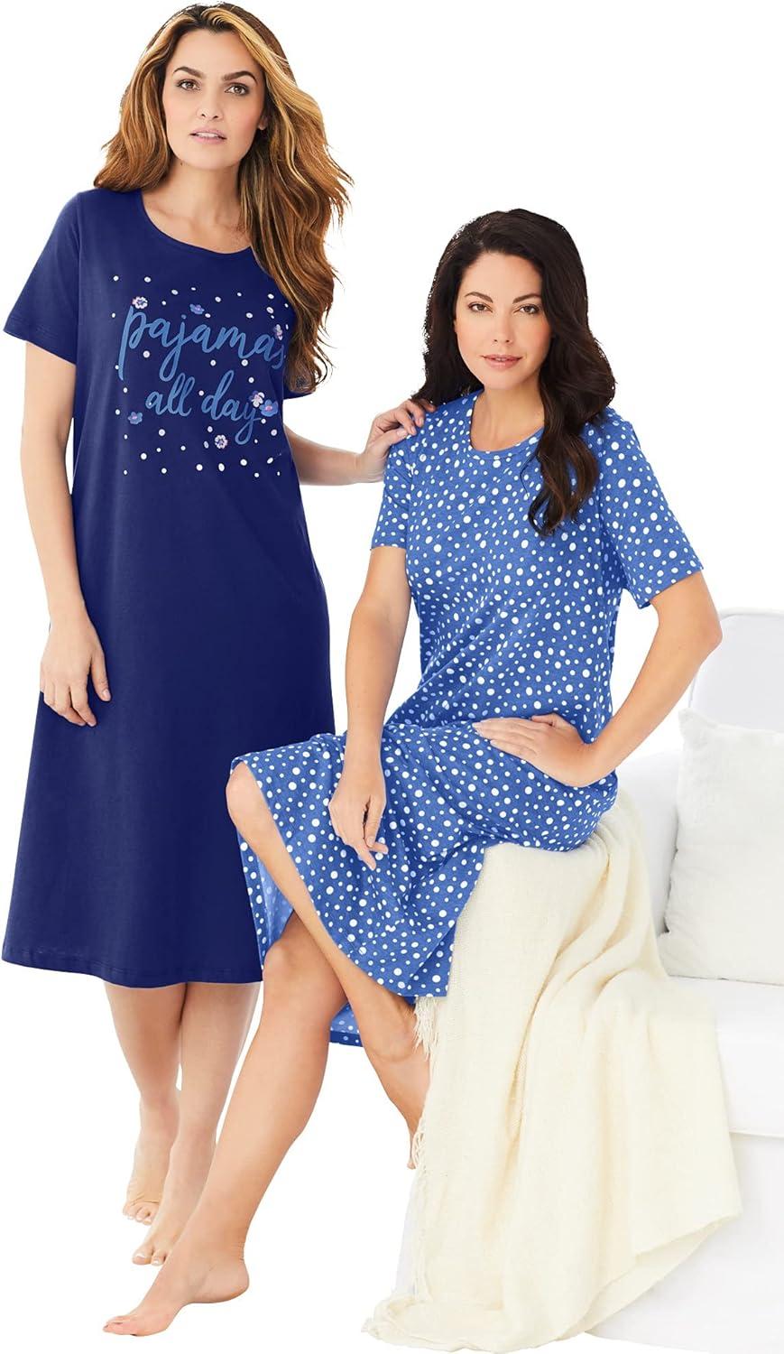 Dreams & Co. Plus Size 2-Pack Long Sleepshirts(Evening Blue Pajamas)