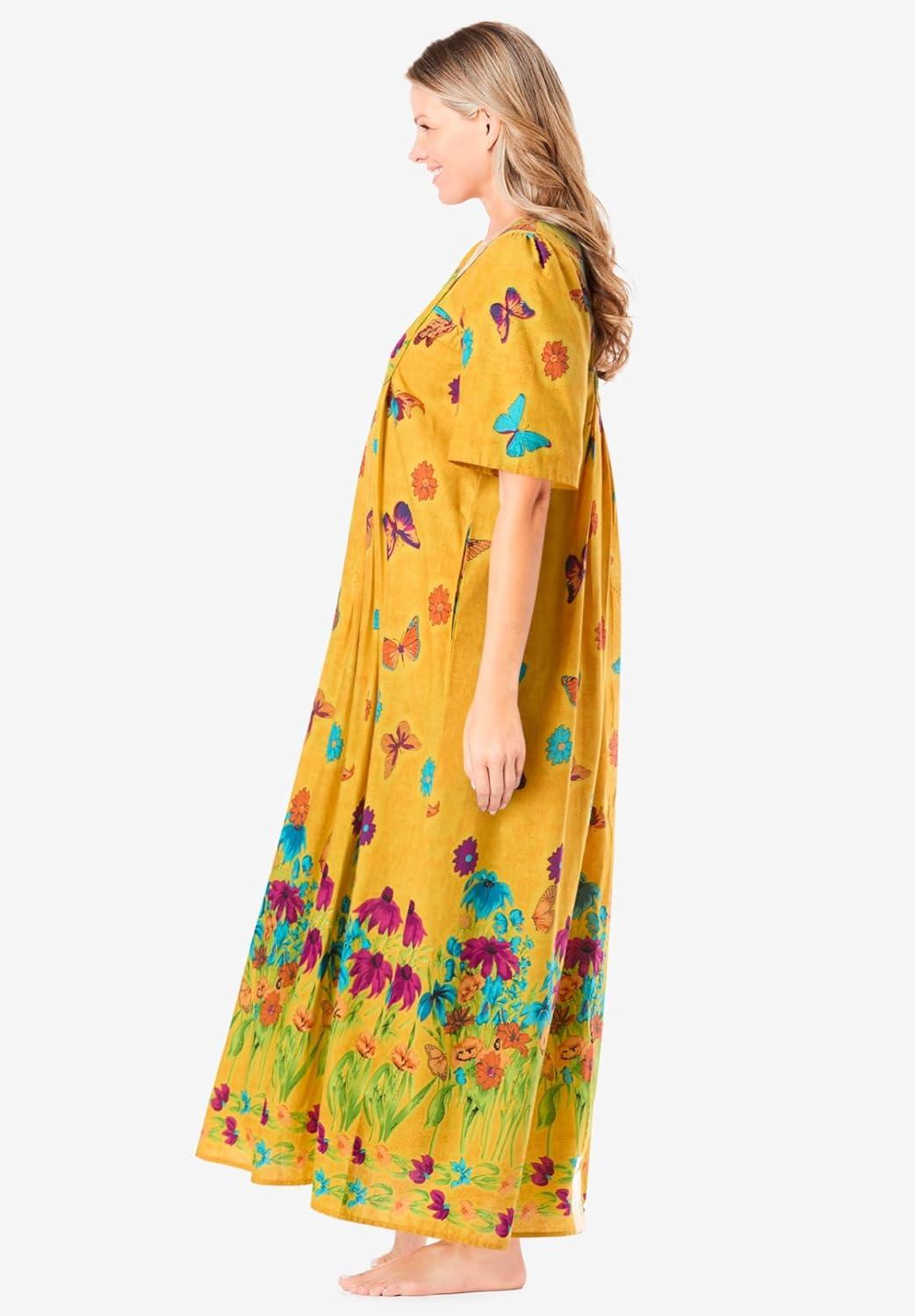 Only Necessities Plus Size Petite Bib Front Lounger(Yellow Butterfly)
