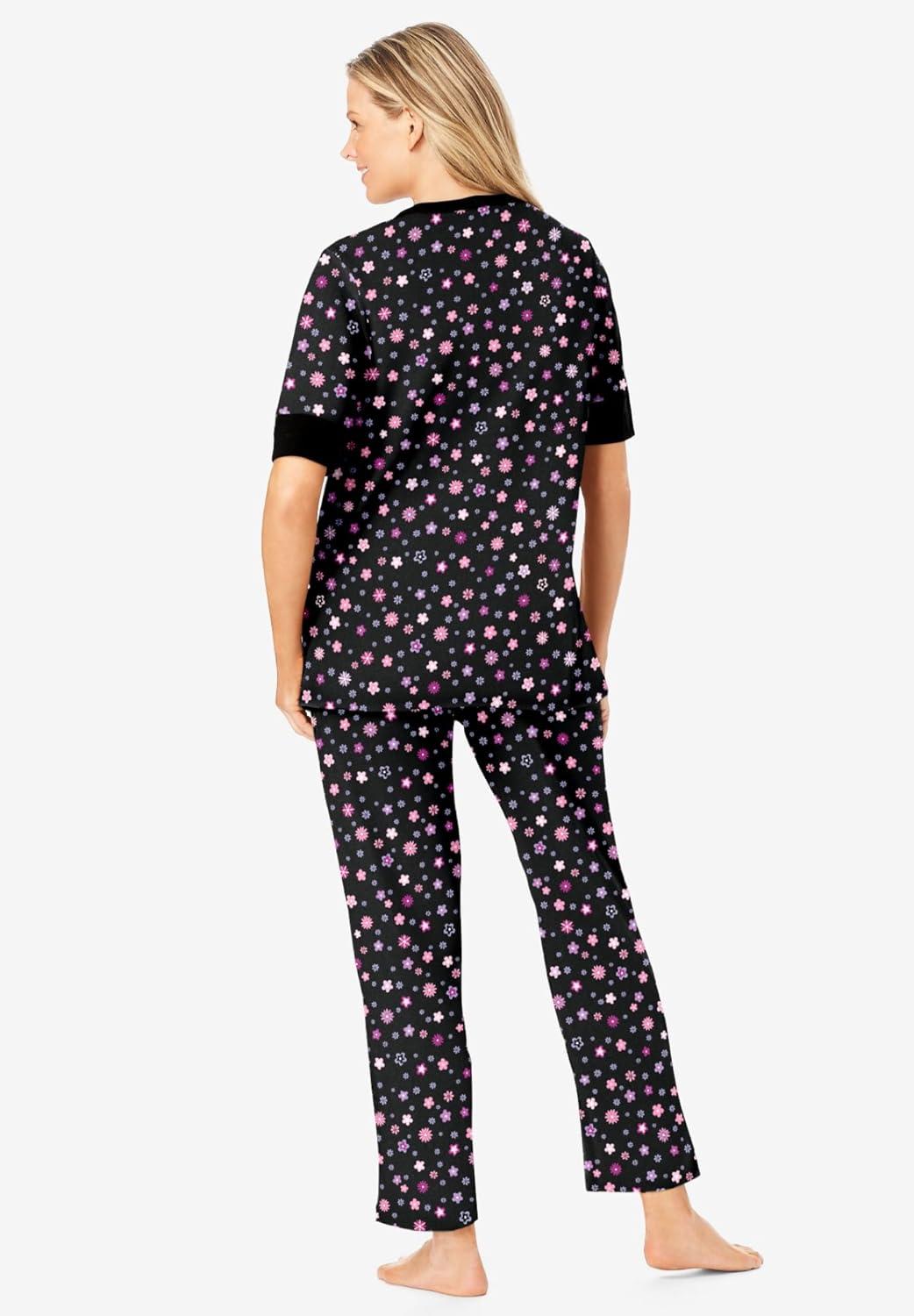 Dreams & Co. Plus Size Printed Henley PJ Set(Black Multi Floral)