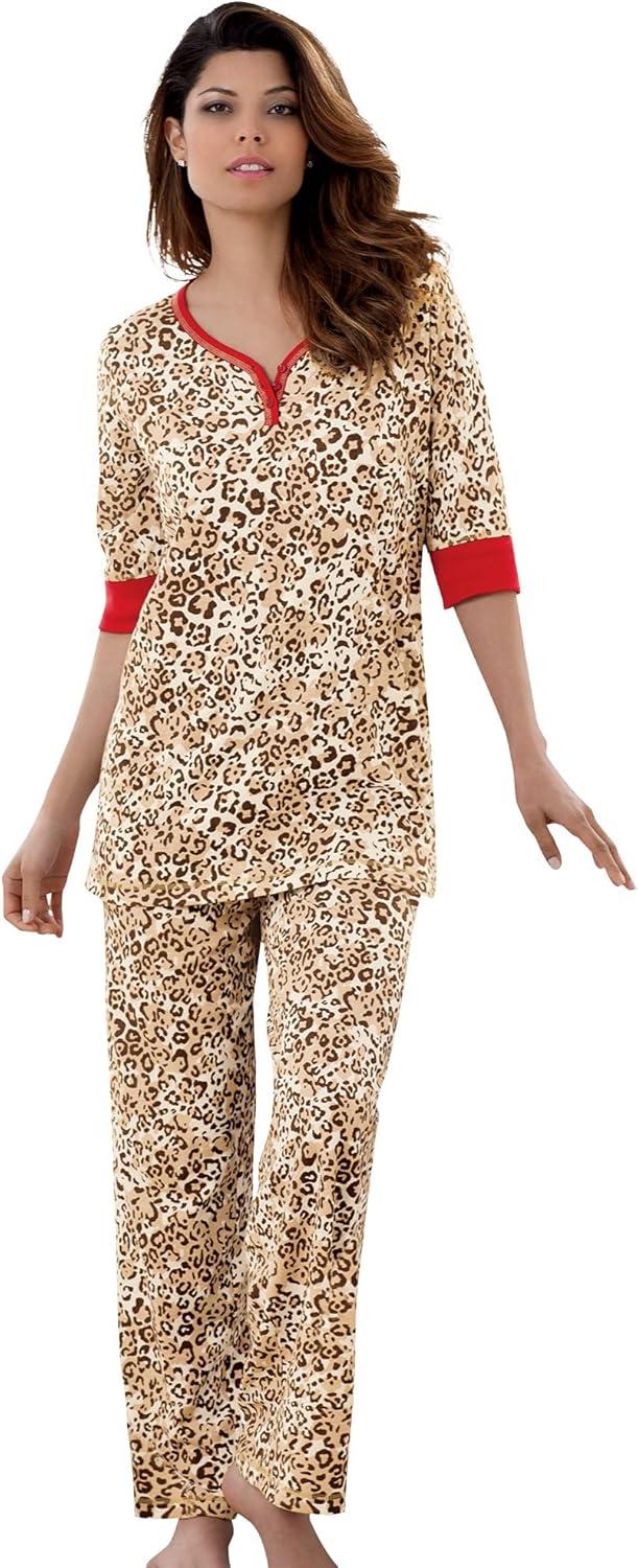 Dreams & Co. Plus Size Printed Henley PJ Set(Classic Leopard)