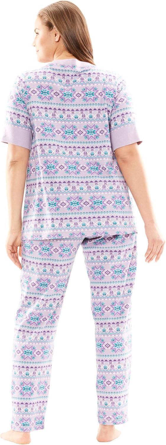 Dreams & Co. Plus Size Printed Henley PJ Set(Soft Iris Hearts)