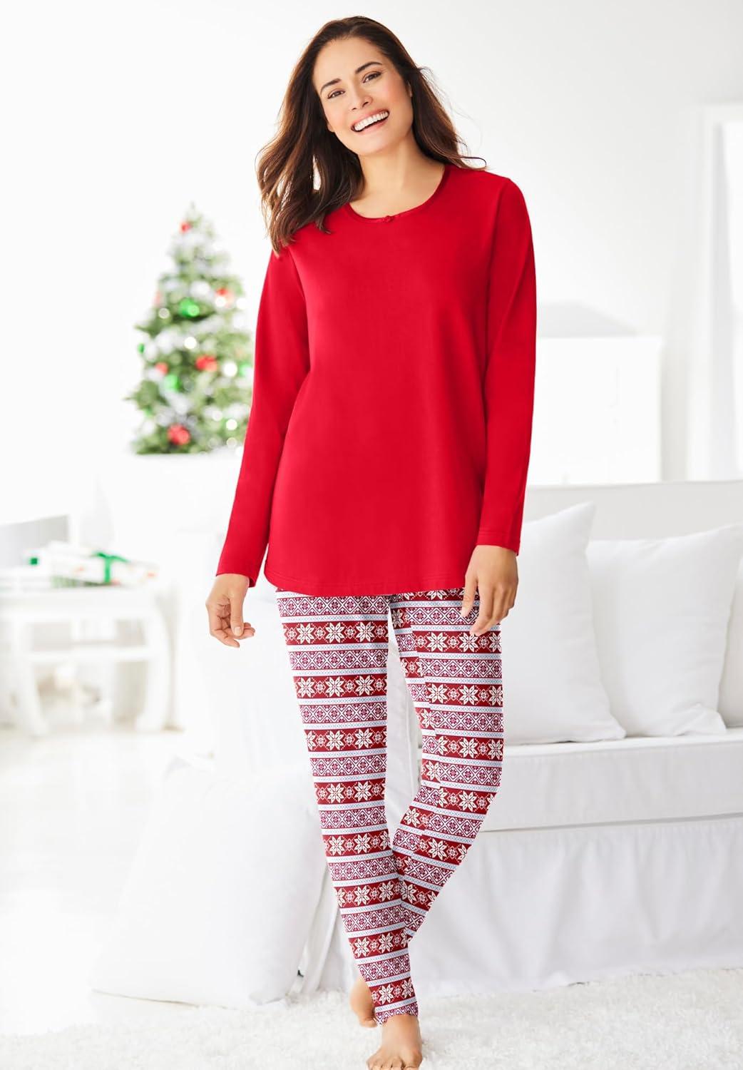 • Dreams & Co. Plus Size Relaxed Pajama Pant(Classic Red Fair Isle)