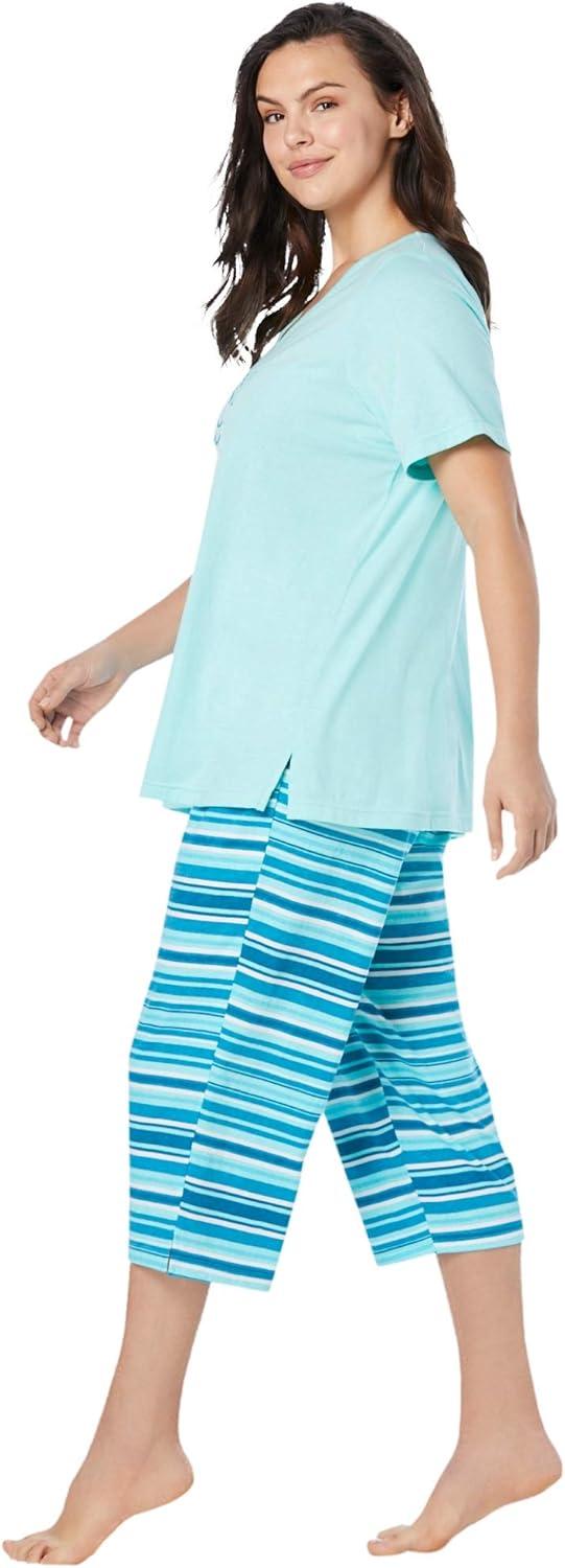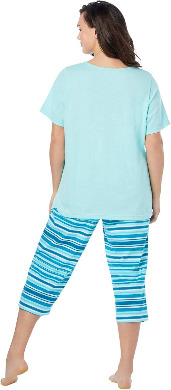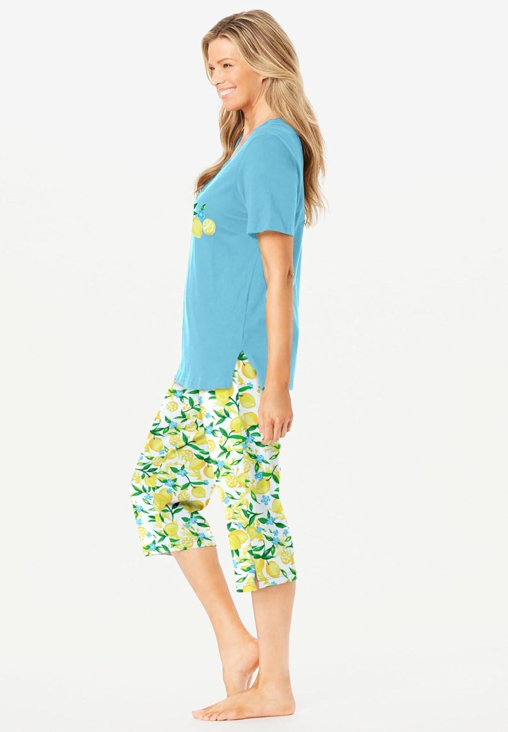 Dreams & Co. Plus Size 2-Piece Capri PJ Set(Pale Ocean Lemon)